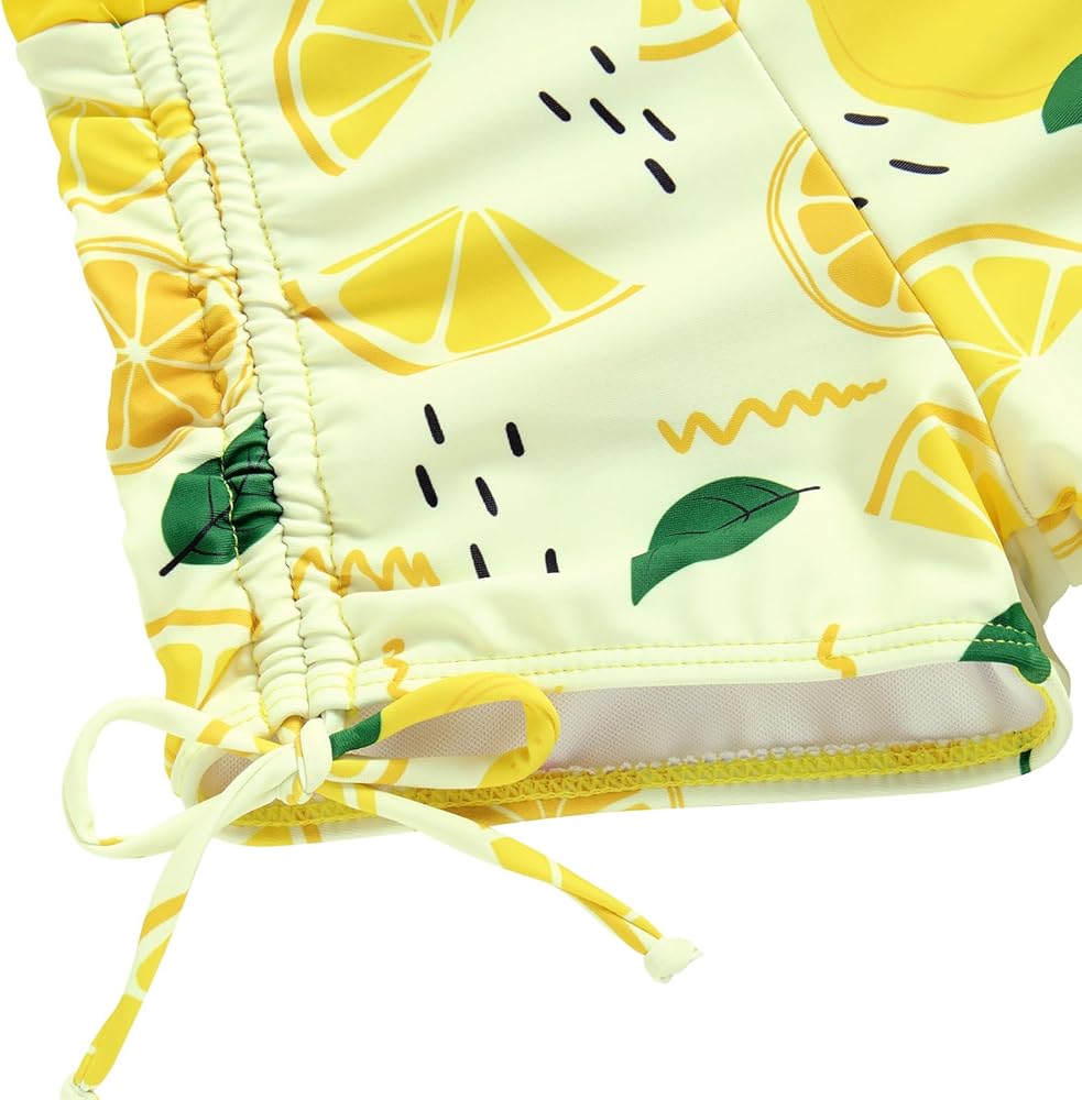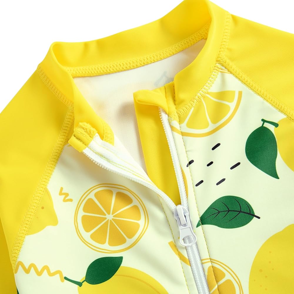 Design: Girls swimsuit consists of Long sleeve zip rash guard shirt and elastic waist swimming boyshorts with adjustable Drawstring.You Can adjust to bikini bottom,mathing the bikini top ,Tropical print, scoop neck,The design offers comfort along with greater flexibility. it's easy for kids to wear and take off.