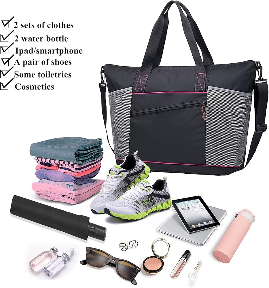 [Life Partner]: Our tote bag for women is a perfect reliable companion for indoor and outdoor sports. It is a great weekender bag workouts, travel, sports activity, tennis, basketball, yoga, fishing, hunting, camping, hiking, and many outdoor activities. Suitable for gym sports bag, school duffle bag, travel duffle bag, travel holdall bag, gym holdall, etc.