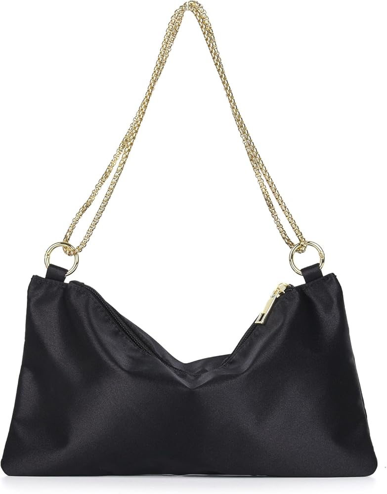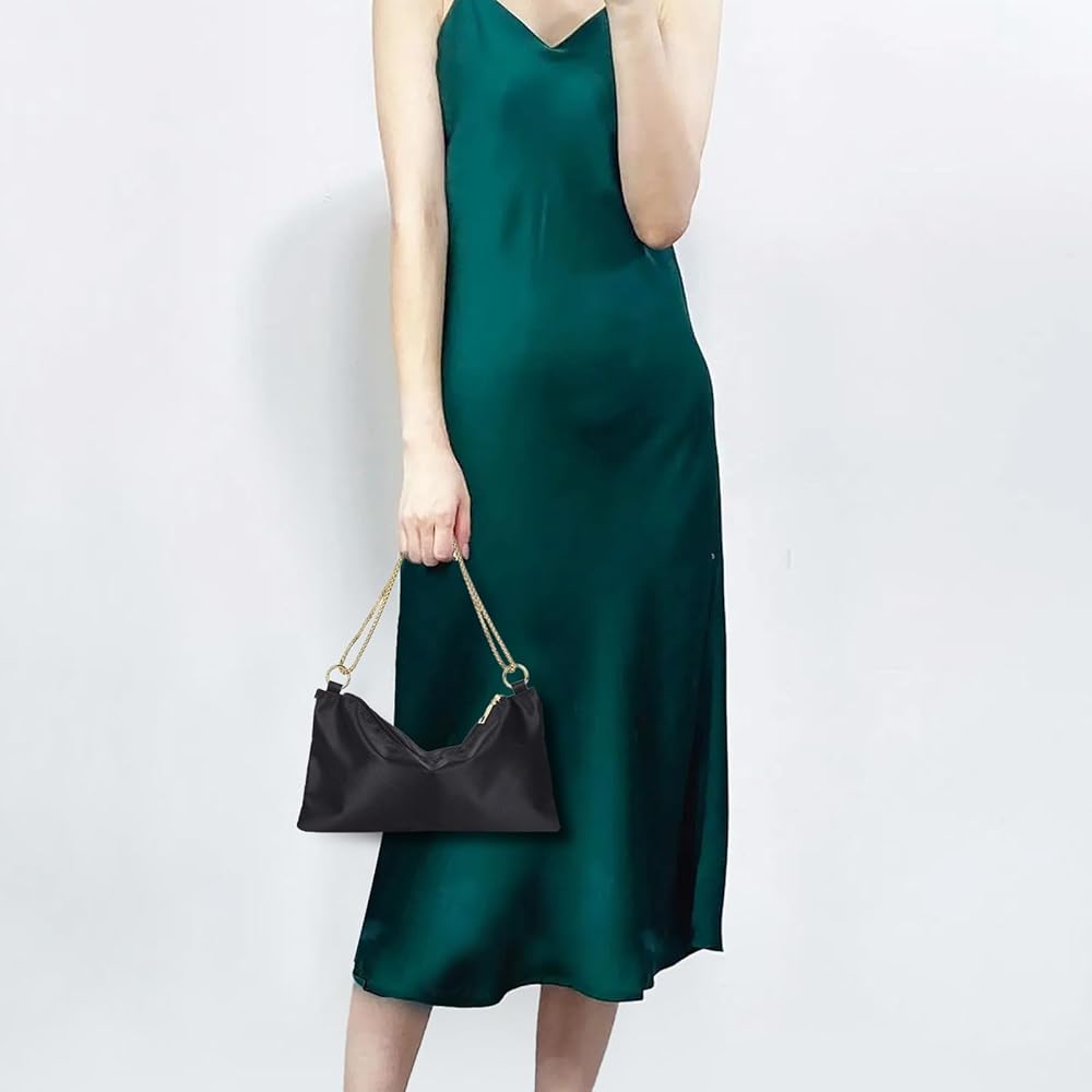 SATIN EVENING BAG - The black clutch purse is made of high quality satin fabric with soft polyester lining, soft and sleek. Once you put the items in, it will naturally slouchy in the middle, elegant and fashionable