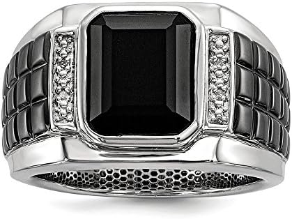 Sterling Silver Diamond & Simulated Onyx Square Black Men's Ring