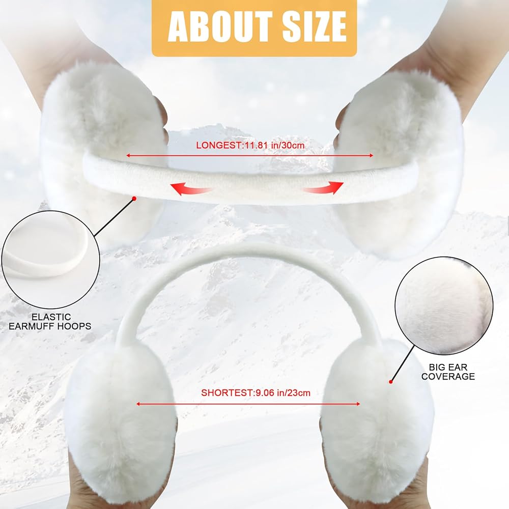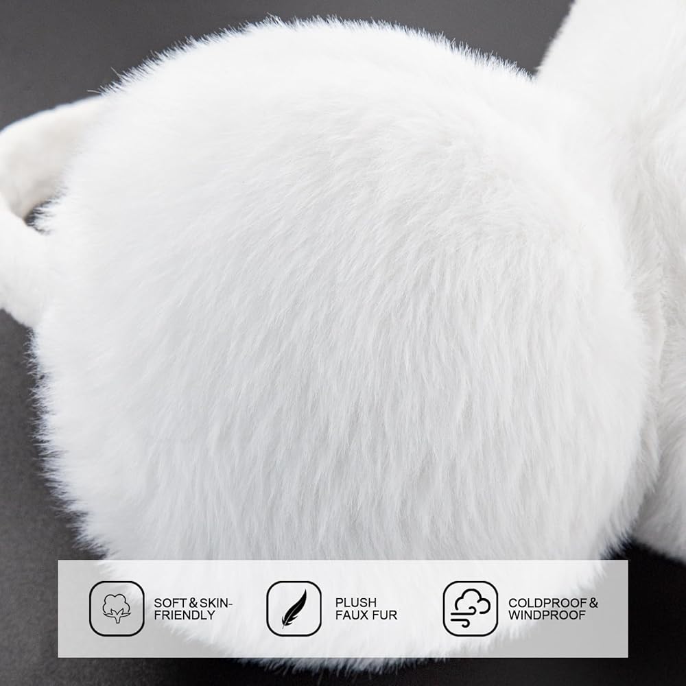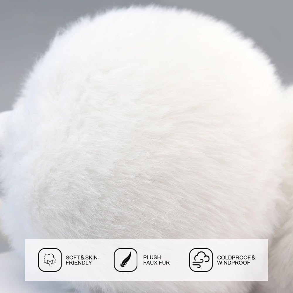 GENEROUS EAR COVERAGE.The comprehensive ear protection design makes our white ear warmers could better keep ears warm during outdoor activities in winter.The cold wind will not drill into your ears, and your earlobes will not be frostbitten with the furry ear covers.
