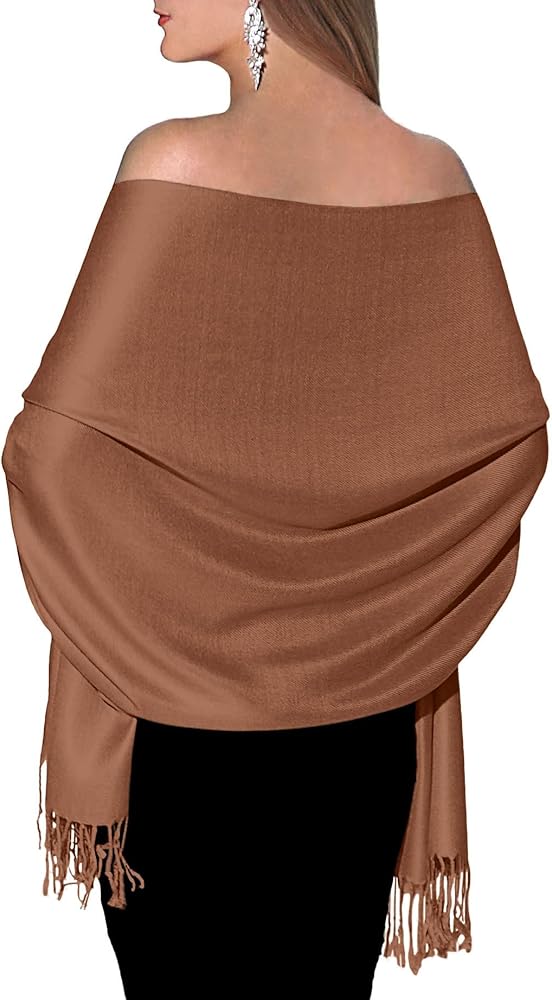 ☆Multiple Ways to Wear☆ Our pashmina shawls offer generous coverage, draping over your shoulders to provide warmth and comfort. Whether you need to stay cozy during a cool evening or simply want to add a stylish layer to your outfit. Wear in a variety of styles: long, knotted, looped, twisted, capes, poncho, wrap, pashmina or doubled around the neck. Measures approximately 74” x 29” including fringe 3.5”. Made from 100% Viscose – even if the tag says otherwise.