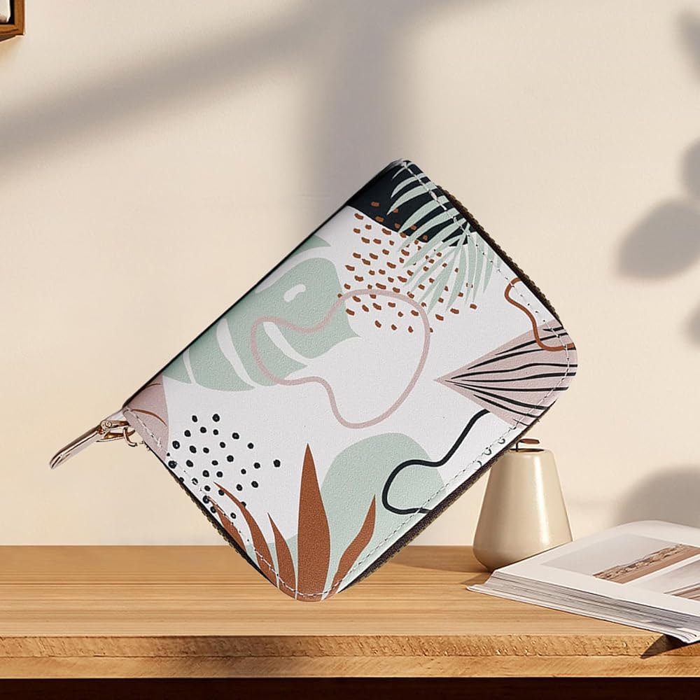 Natural Elegance: Immerse yourself in the beauty of nature with a captivating leaf and flower patterned zipper coin purse and card case wallet.
