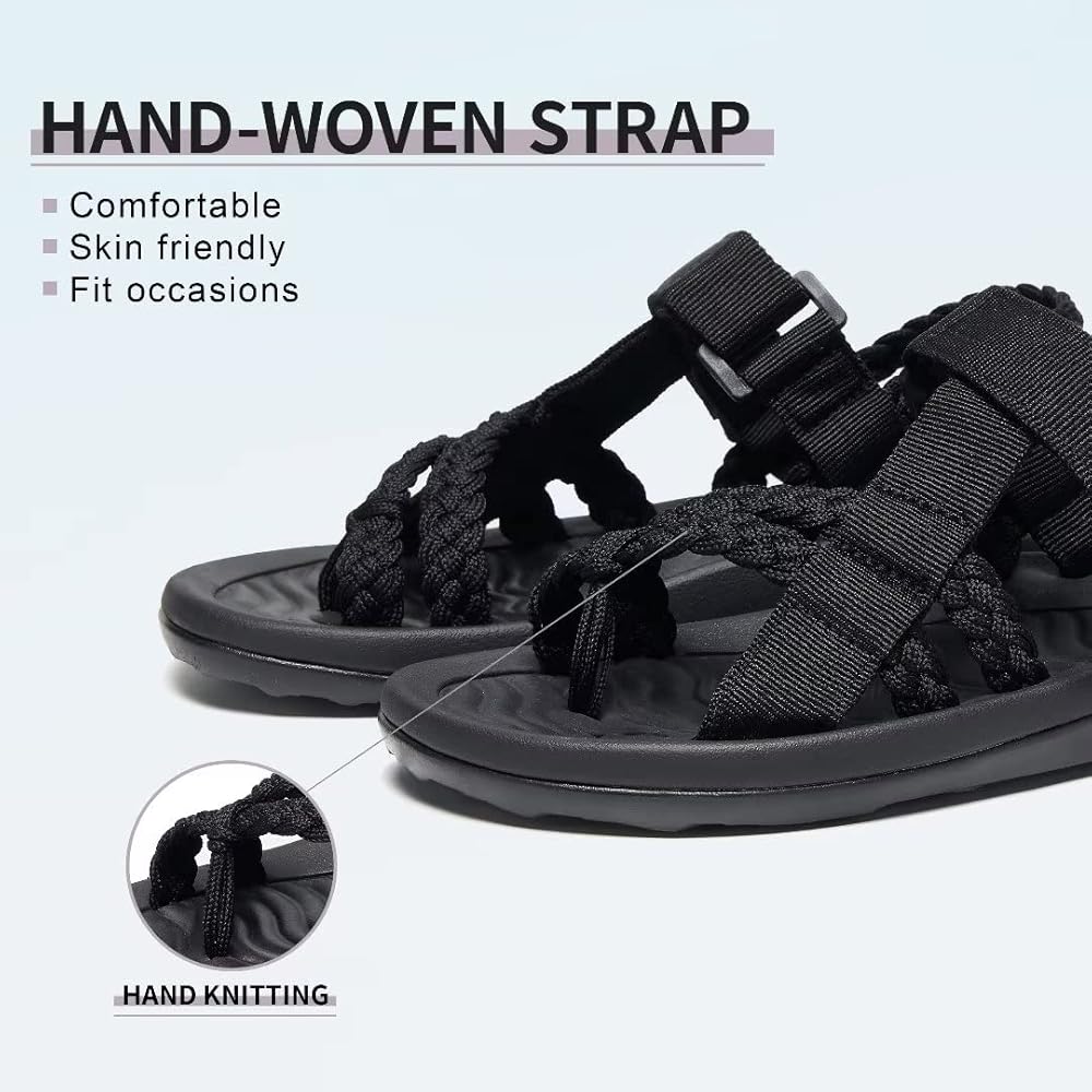 ☞ HANDMADE QUALITY: The upper section is made from hand-woven nylon cord, the soles is quality synthetic rubber material. Every pair of our unique women's braided sandals are handcrafted with the utmost care and attention. Easily adjust the straps to a comfortable position and the sandals stay with your feet wherever you go.