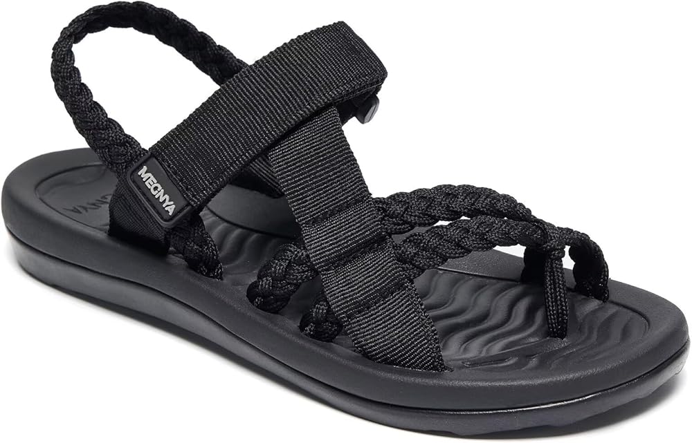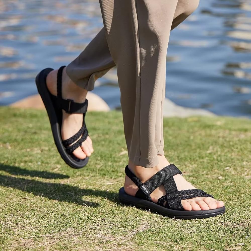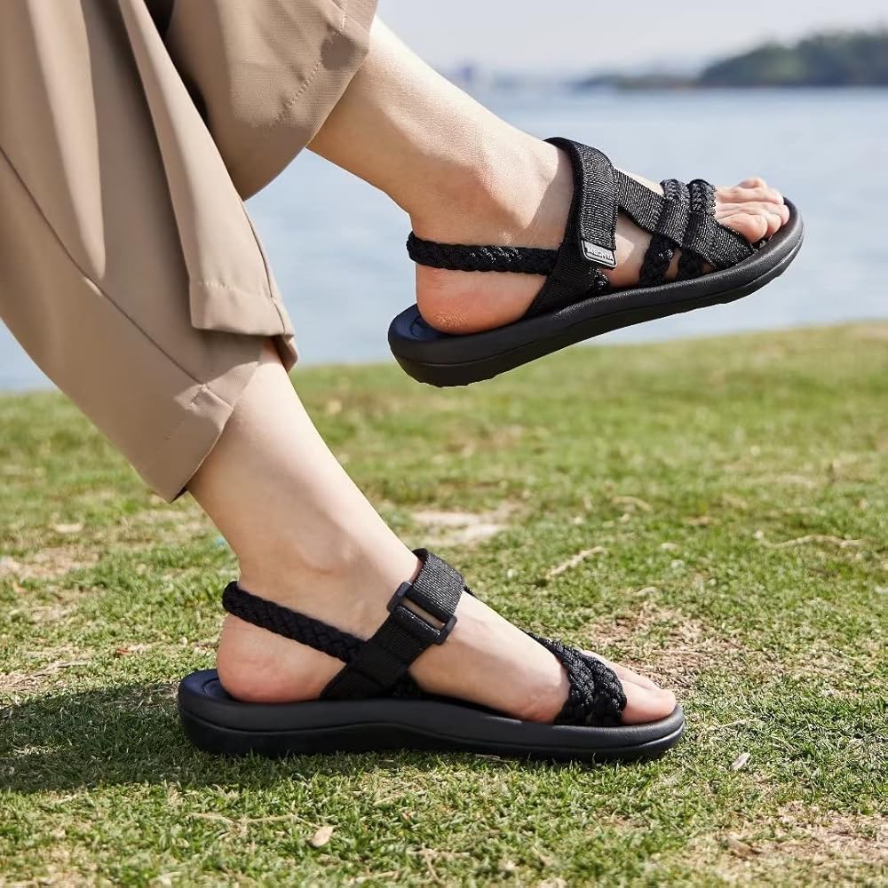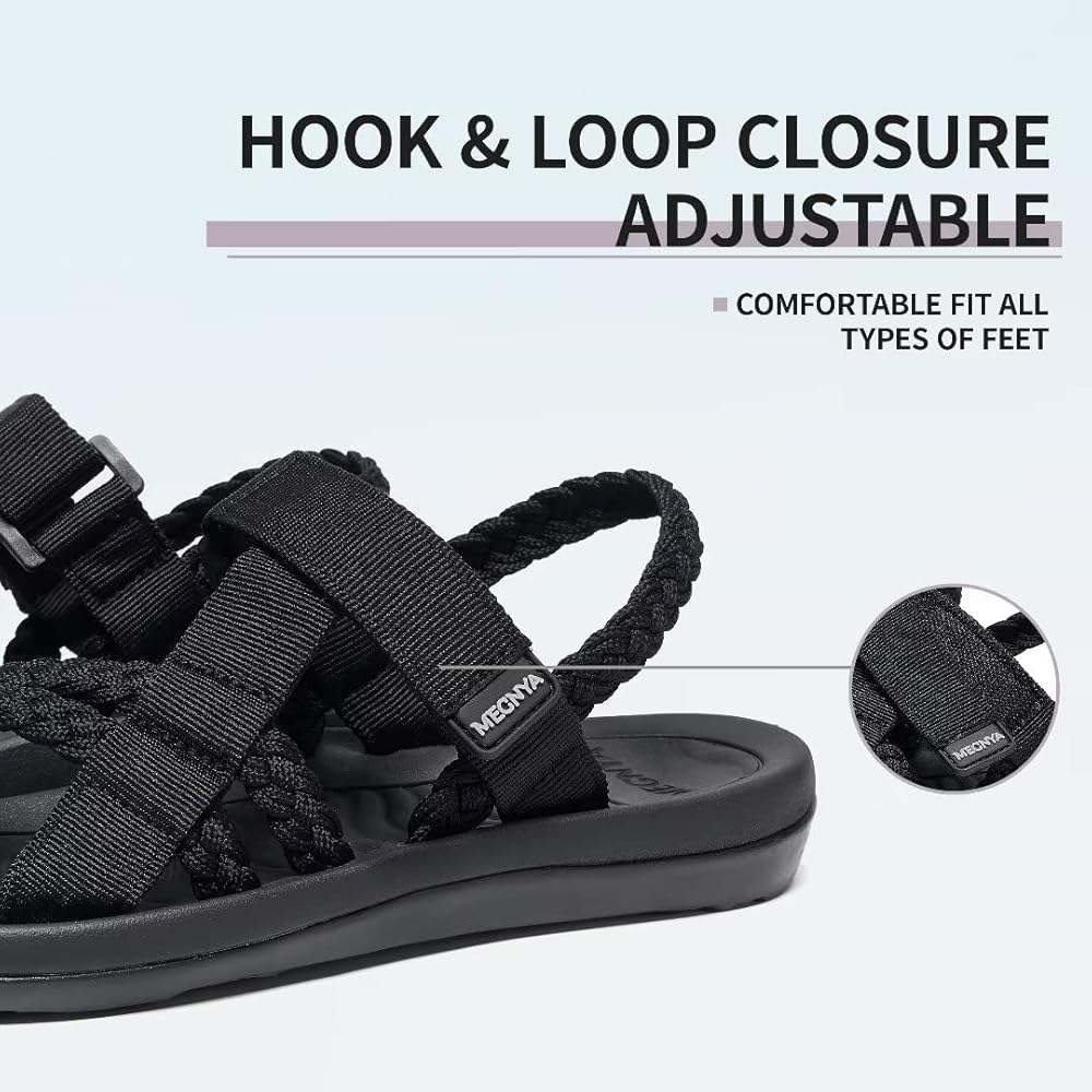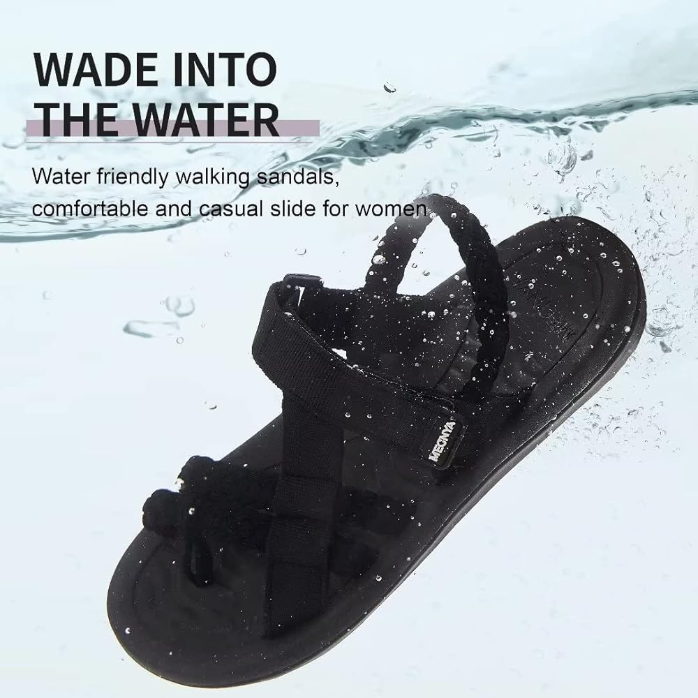 MEGNYA Hiking Sandals for Womens, Comfortable Walking Flip Flop Sandals with Arch Support, Athletic Sandals with Hook and Loop Straps for Beach Vacation Adventure