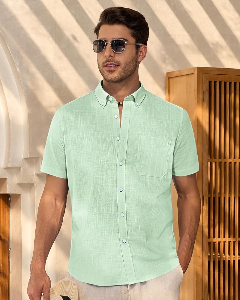 Casual and Versatile: This linen shirts can match with sunglasses, beach shorts, linen shorts, dress pants, chino pants, jeans for a casual fashion look, suitable for men, boys, all the youth or adults