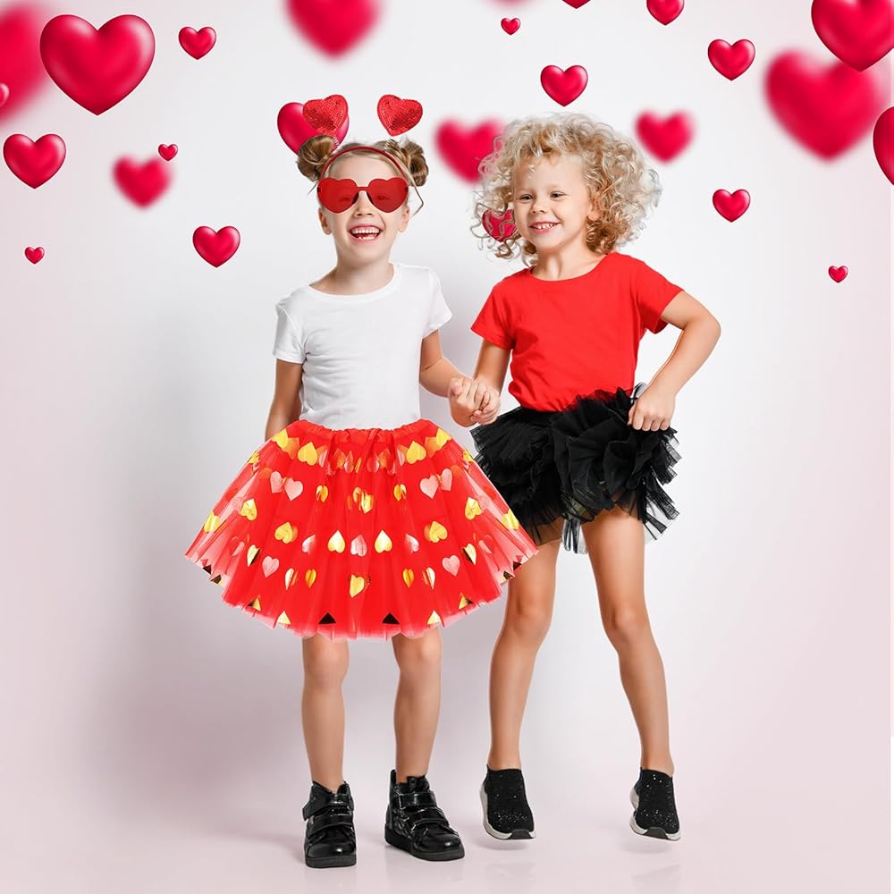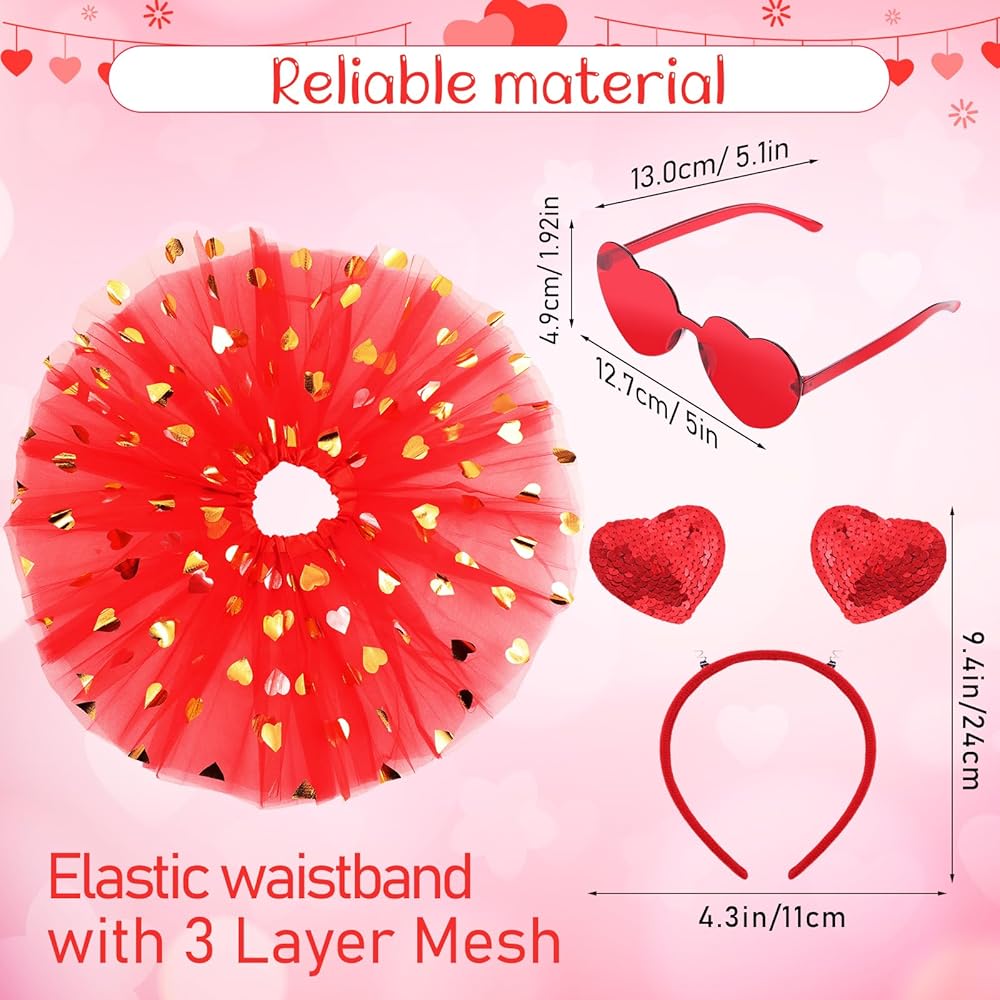 The Valentine day tutu, sunglasses and headband can match with other supplies, such as necklaces, bracelets, clowns and more, making kids feel loved on Valentine's Day.