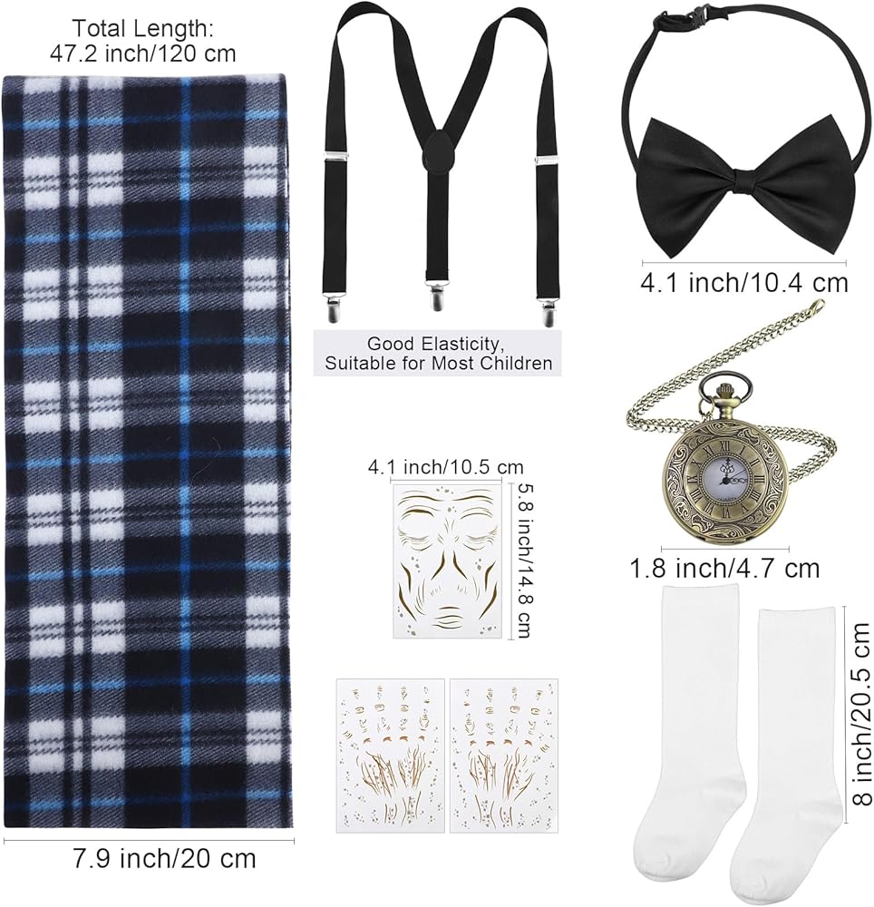 Value Accessories: the Y-shaped suspender is made of premium polyester fabric, with an adjustable design for most people's comfortable wear experience, sturdy and durable, matched with white stockings and scarf can well dress you up an gentle old man; all the other accessories, gold pocket watch, metal cane and golden brown glasses will work together to complete your old man dressing up (the plain glass spectacles are suitable for most people, please be reassured to wear them)