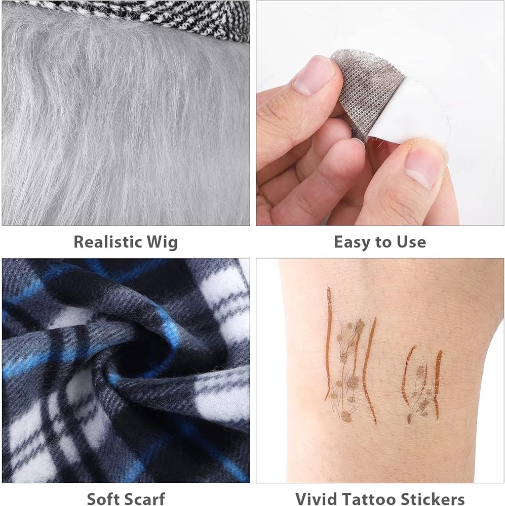 High Quality Beret: the old man costume beret is made of premium polyester and cotton, lightweight and comfortable to wear, designed in a size that fits most people; the silver-grey wig sewn inside is made of artificial fiber, matched with the eyebrows and beards of the same color and realistic wrinkle tattoo stickers, you can easily cosplay an old grandpa