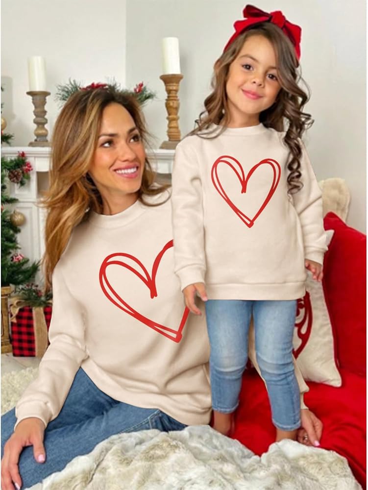 ❤️【Family Matching Outfits】: Mom and daughter matching outfits Valentine's clothes. Are you looking for a loving Valentine's Day gift for your daughter and wife? This valentines day heart sweatshirt will be the best gift choice for you. There are S, M, L, XL, and XXL five sizes for women, and 2-7 years for toddler baby girls, which are easy to dress up and essential for every fashionable Family Matching Outfit.