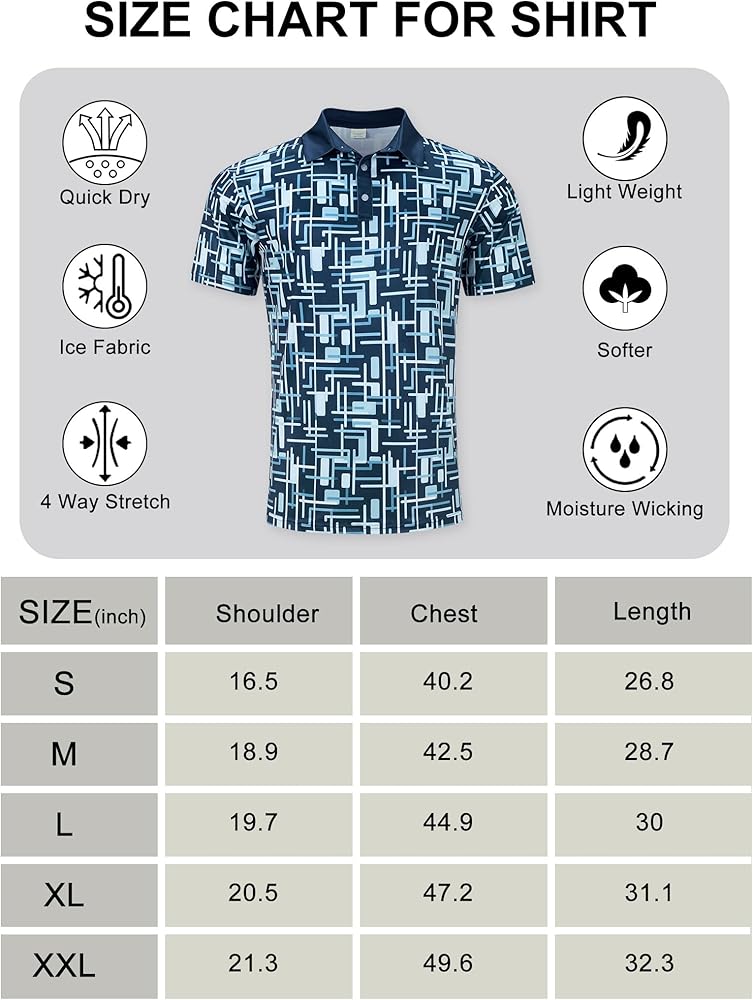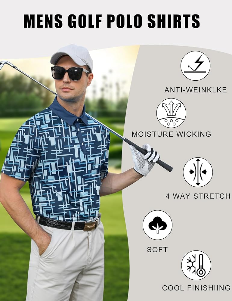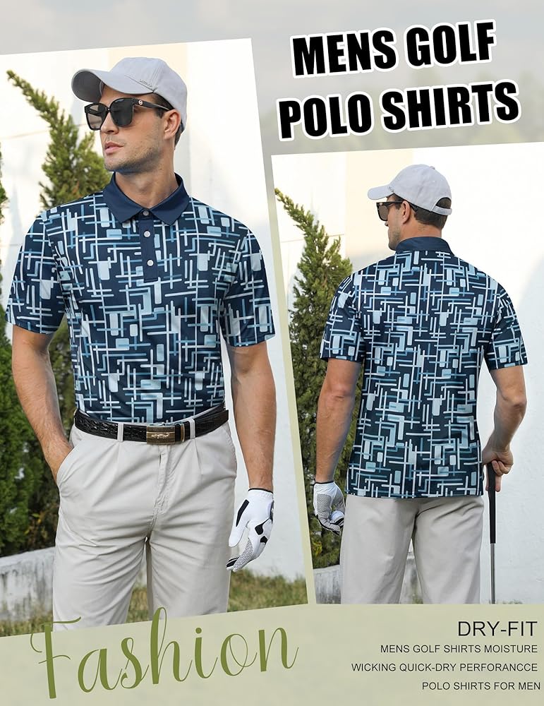 【Fashion Design Golf Polo Shirt】:Our golf polo shirt is design with stylish appearance, come in a wide range of pattern choices to help suit every individual's personal style and preference. Make you stand out on the golf course. It can be matched with bottoms of various styles, such as trousers, casual shorts, tooling shorts, jeans, etc.