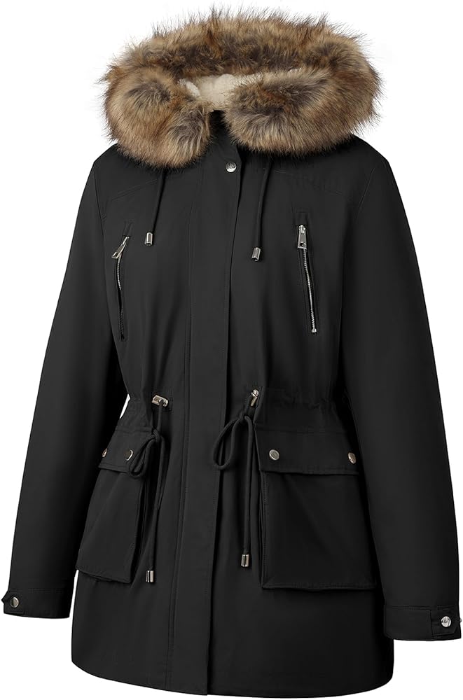 Durable: Removable faux fur collar hood and adjustable drawcord provide wind protection in cold winter. Long sleeve cuffs with buttons block the wind and snow for a comfortable fit. The zipper and button closure improve the appearance while keeping your body dry and comfortable. All designs are diversified and warm, making you look beautiful.
