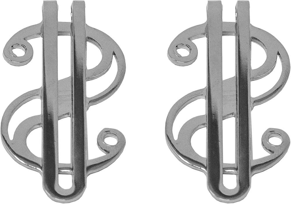 The unique hinged mechanism of each money clip allows for easy opening and closing and also ensures a secure grip on your cash and cards, keeping them in place even when you are on the move. The sleek and unique dollar sign shape of the clips is sure to catch the eye and make a bold statement.