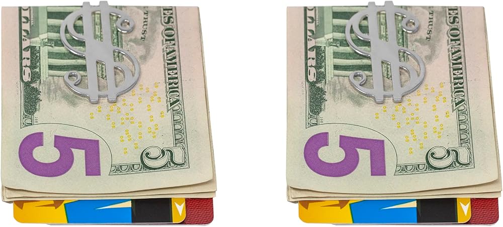 The dollar sign shaped money clip set is a stylish and functional accessory to keep your cash and cards organized. The money clips are made of high-quality metal with a reflective silver finish that adds a touch of elegance to your everyday carry.