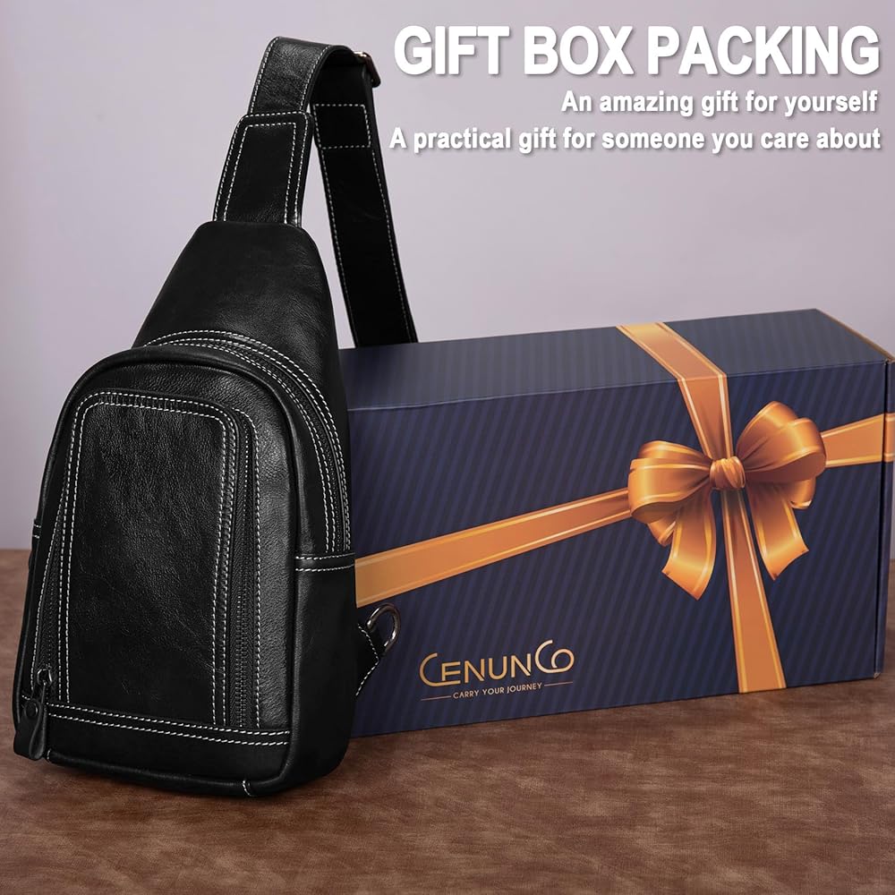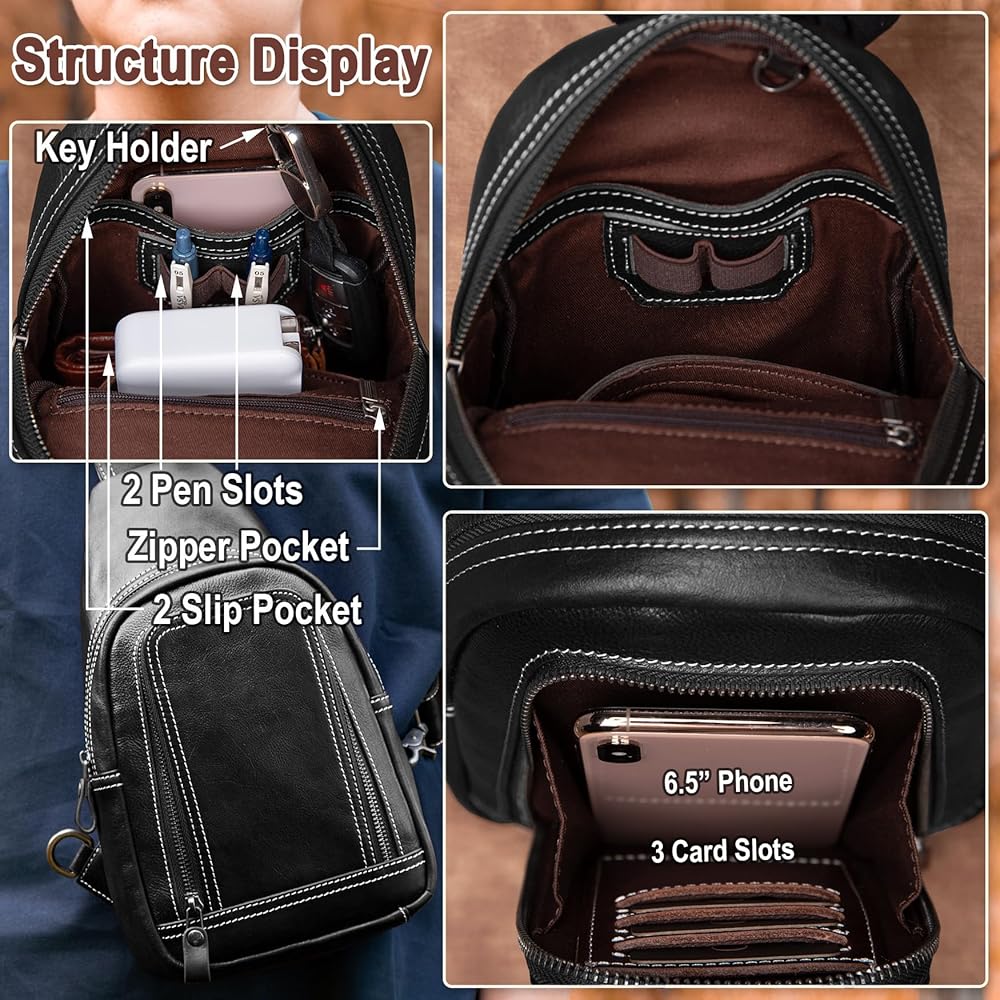 ★[GENUINE LEATHER SLING CHEST BAG] – This sling bag for men and women was made of genuine leather, combine with comfortable cotton lining and durable metal zippers, this leather bag is suitable for hiking, cycling, and daily travel.