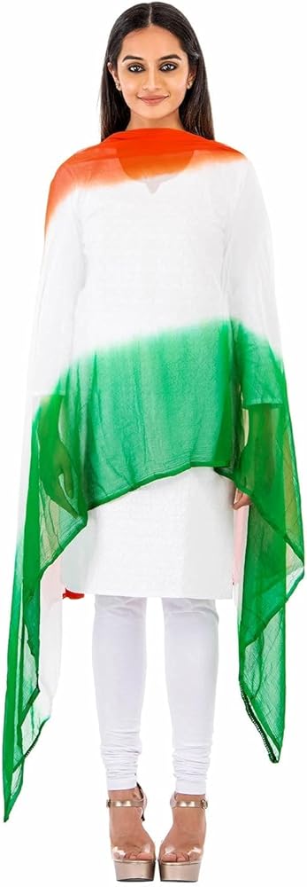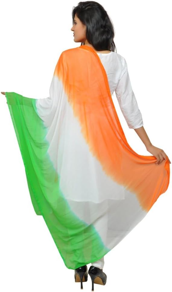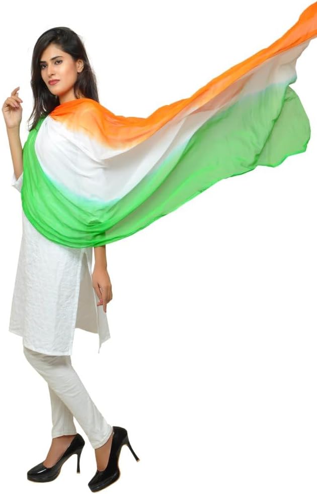 Tricolor / Tiranga Dupatta. 2.25 Mtr Length. Ideal for both Men & Women. Multi Colour Chiffon Dupatta (Pack of 2)