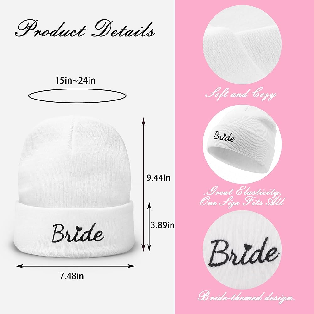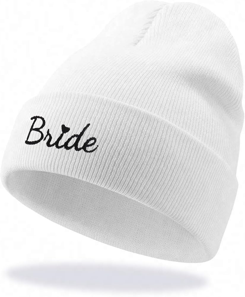 Bride Beanie Hat for Women - Bachelorette Party Accessories Stylish Winter Bridal Shower and Bride-to-Be Gifts for Her with Black BRIDE Embroidery