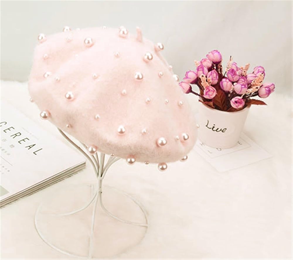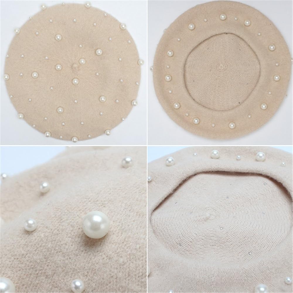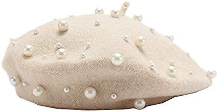 Vintage Beret Hat Pearl Wool Lady Winter Warm Hat Beanies Artist Hat