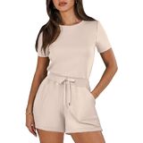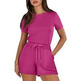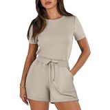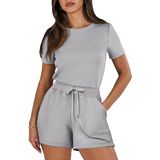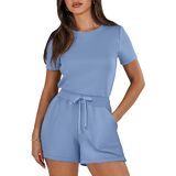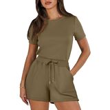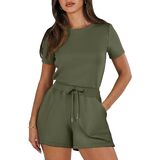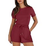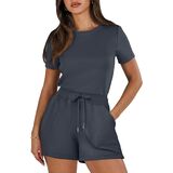 Fashion-Forward Design: The rompers for women features a trendy crewneck, short sleeves, elastic waist with drawstring, side pockets. It is a must have and perfect for summer.
