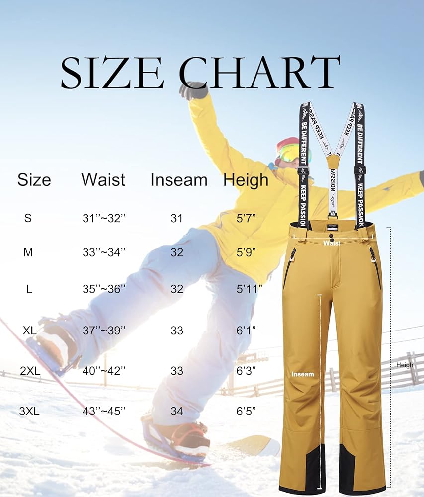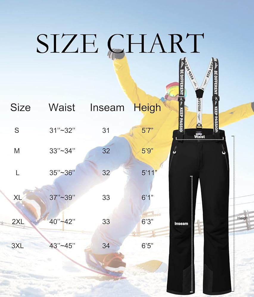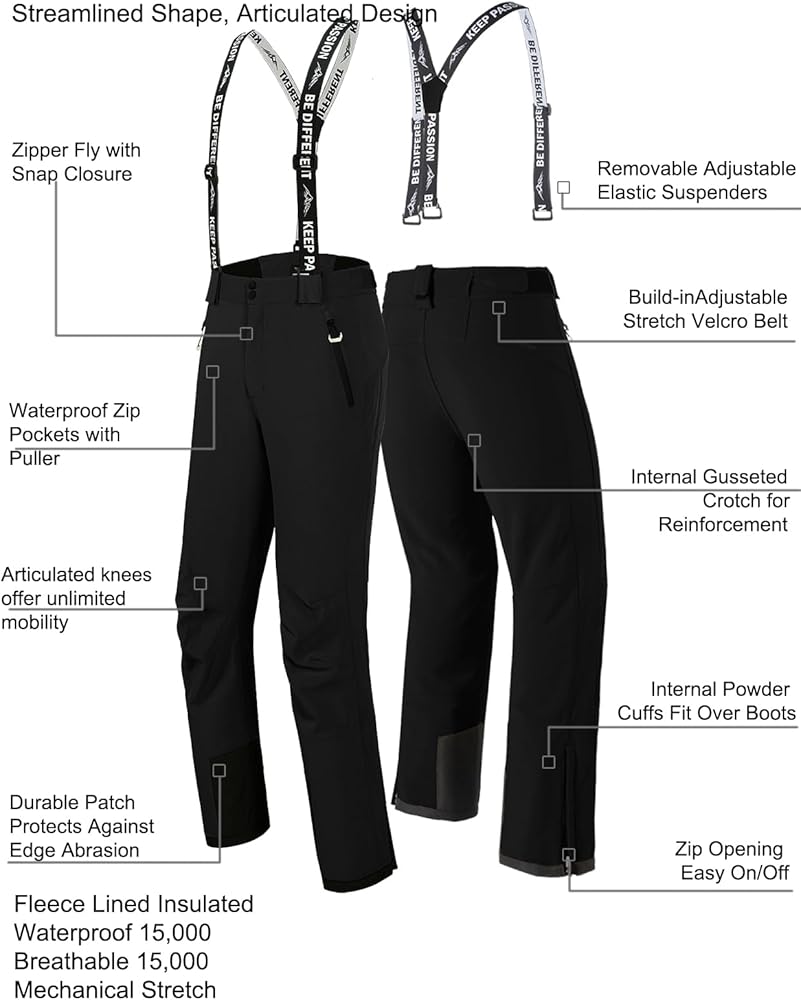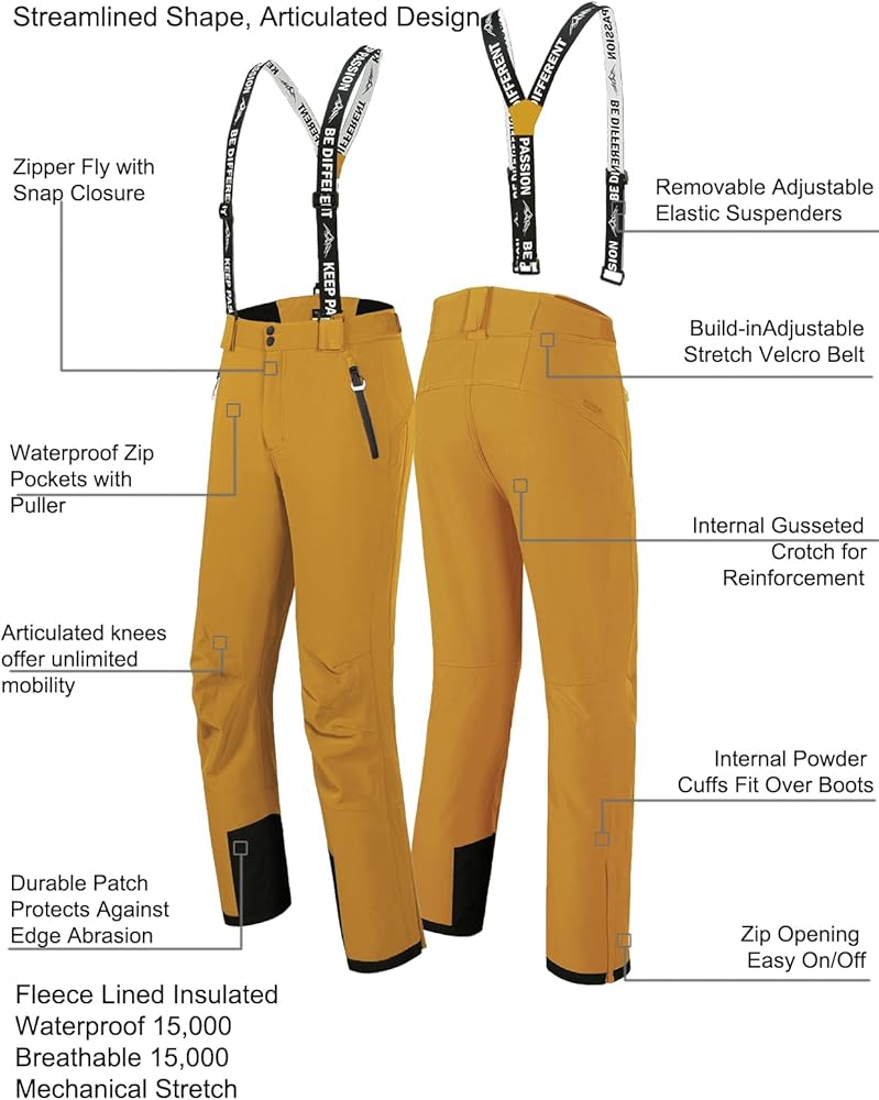 MEN'S WINTER PANTS: Waterproof men's ski pants are designed for cold weather. Ideal for technical skiing, snowboarding, snowmobiling, hiking, fishing, hunting, camping, rock climbing, mountaineering, walking, traveling, biking, tactical activities and everyday wear.