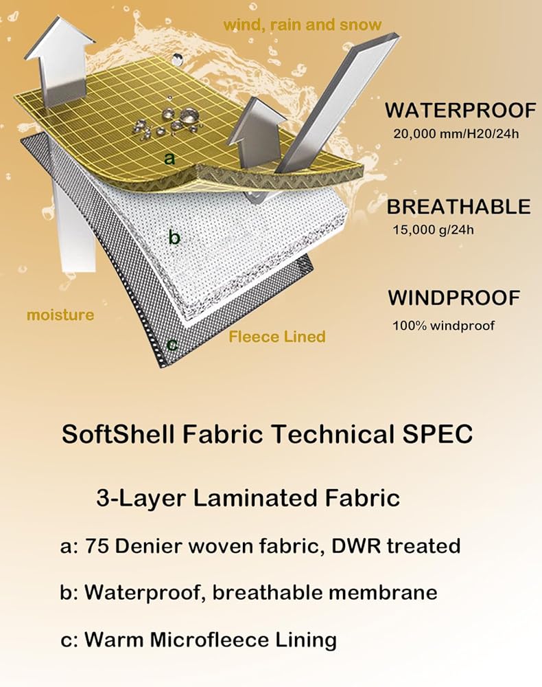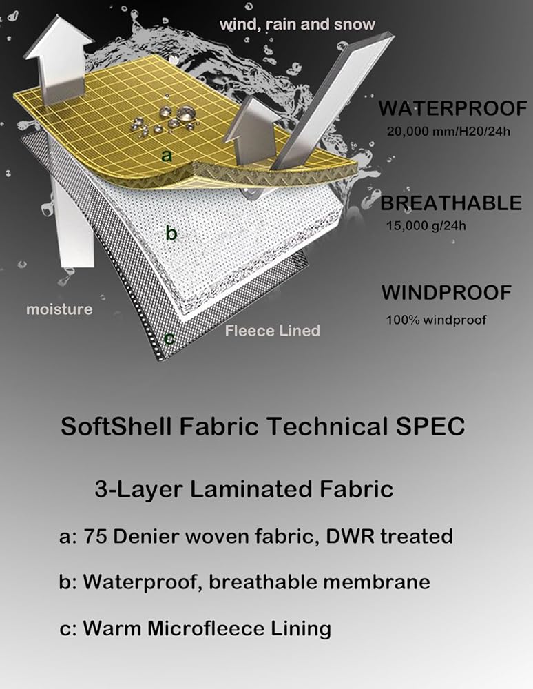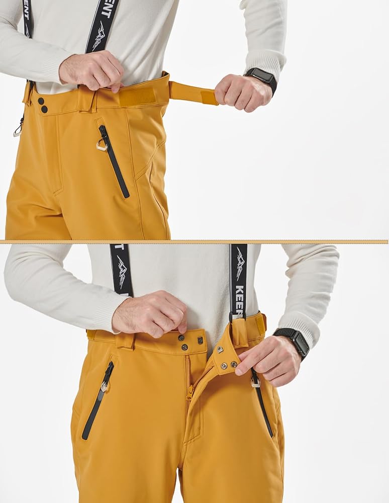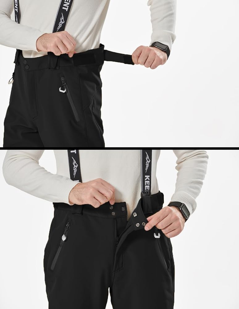 LOCK WARM AND WATERPROOF: These snow pants are made of triple structured softshell stretch fabric with waterproof and breathable technology for comfortable wear. The inner layer is a cozy polar fleece fabric that provides warmth and wicks away sweat in cold outdoor environments.This insulated soft shell of the winter hiking pants is durable and not bulky.