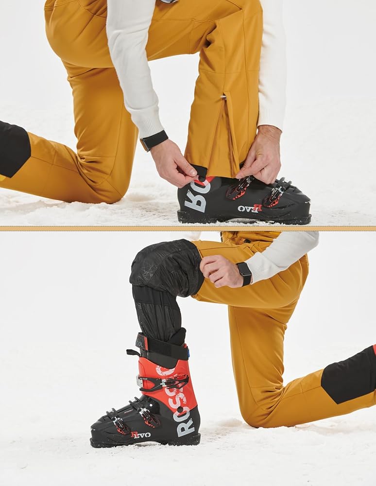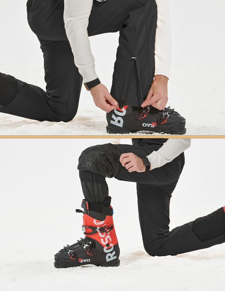 ZIPPER AT BOTTOM LEG OPENING: It makes easier to put on and take off your fleece lined pants when skiing or hiking. This zipper allows the soft shell pants to cover ski boots, keeping cold snow and winter winds from getting inside the pants.