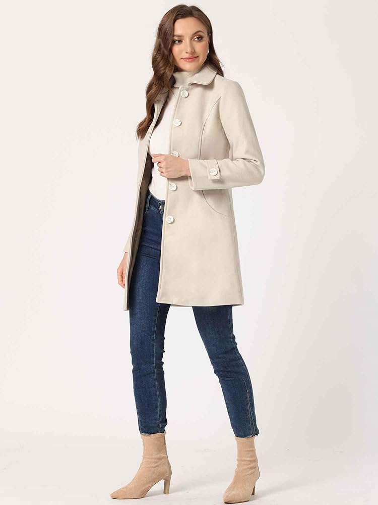 Allegra K Women's Winter Outerwear Overcoat Peter Pan Collar Mid-thigh A-line Single Breasted Pea Coat