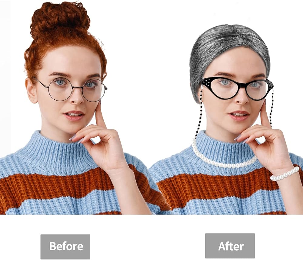 Widely Range of Uses: Our granny wig set is suitable for wearing on various occasions such as Halloween parties, costume parties, role play, school games, Christmas parties, 100th-day school parties, and other theme parties; you can choose to dress as grandmother or old lady, which will be very interesting, it will surprise your friends; besides, the wig set will be an ideal choice of gift for family and friends!