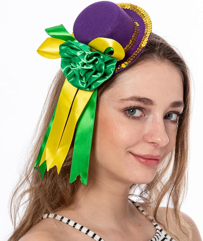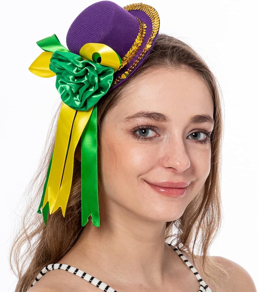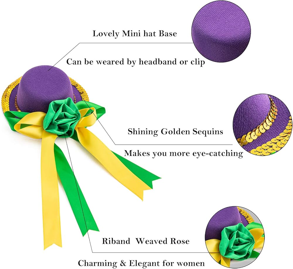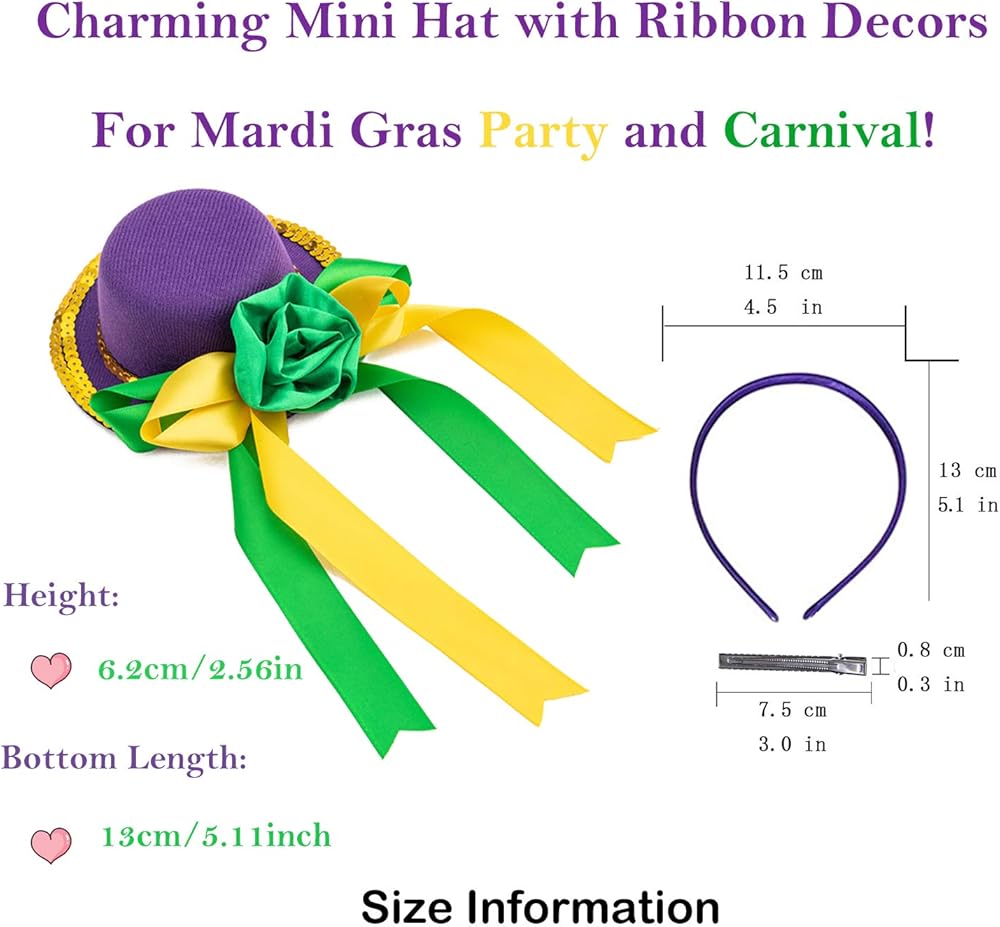 ♚Elegant Accessories♚ the Mardi Gras themed mini hat with ribbon and sequins not only add energy to your look, but can also be paired with a variety of styles of outfits and other accessories. you can share this hair clip to your friends at carnival and you will definitely get many compliments.
