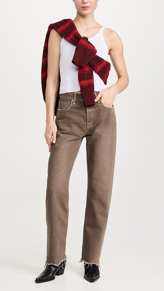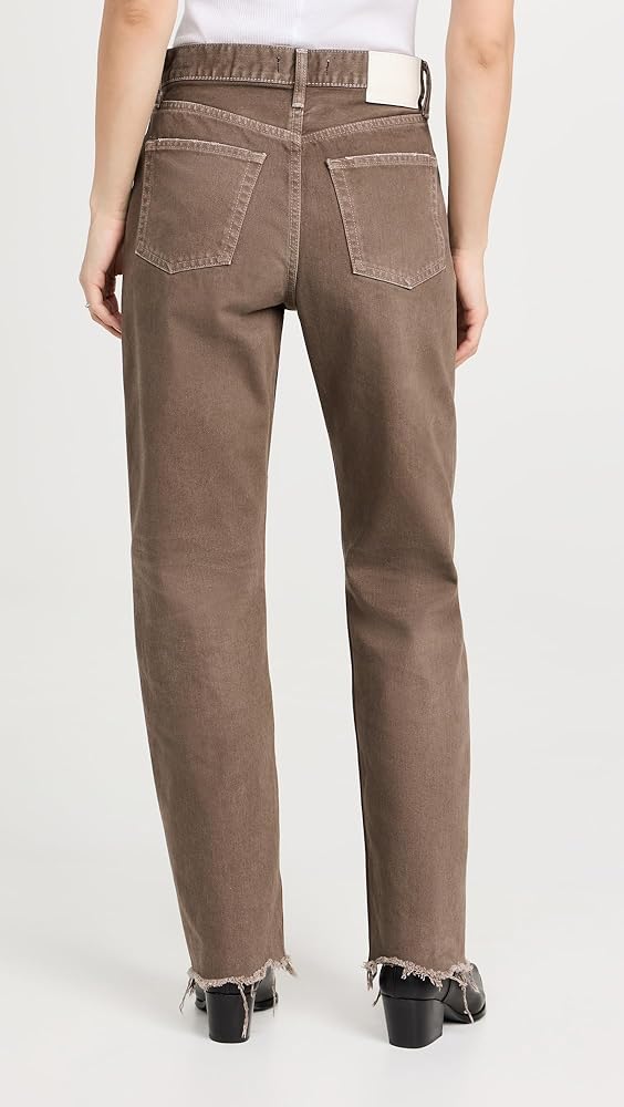 Runs true to size., Designed with a high rise and straight leg. Fit runs slightly small at the crotch. Denim has no stretch and may feel snug initially, but will soften and give with regular wear.