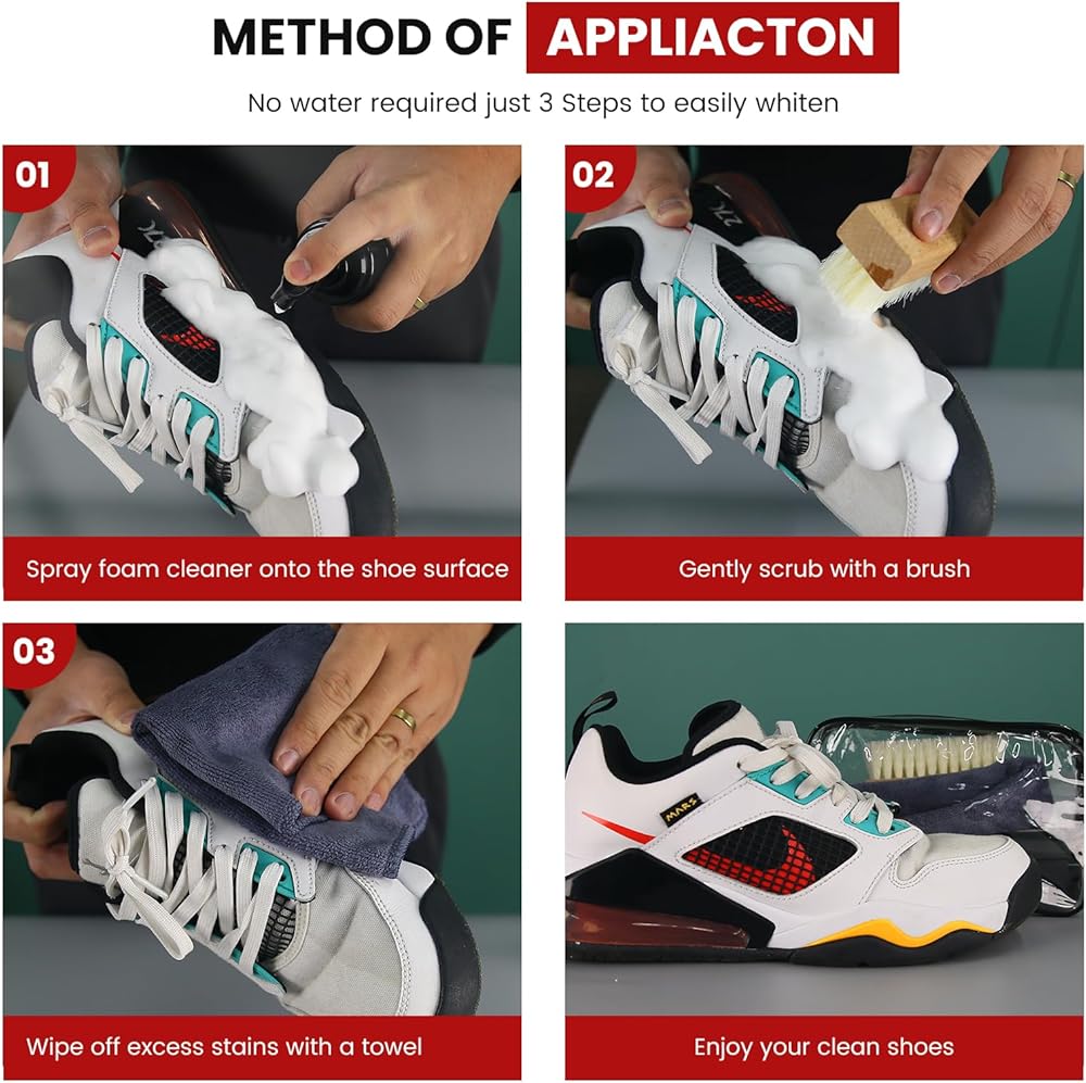 PROFESSIONAL-GRADE CLEANING POWER: Experience the difference with our powerful sneaker cleaner that goes beyond surface grime. It's formulated with a variety of materials that effectively removes stains but is gentle on shoes, leaving them looking like new without compromising quality. Suitable for all types and materials of sneakers.