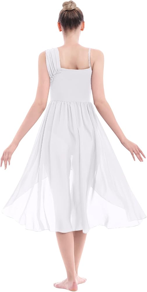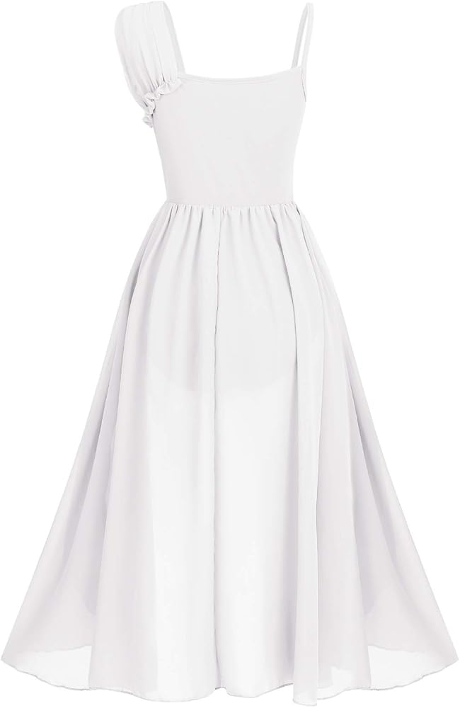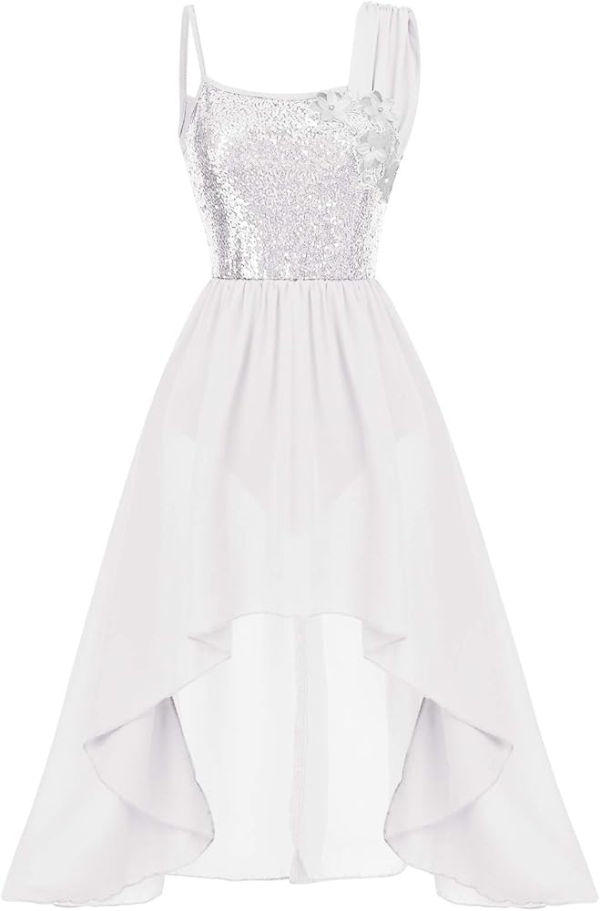 💗💗【Irregular Flowy Chiffon Tulle Skirt】Lyrical dance costumes for women adult sequins contemporary modern dance dress. Asymmetric lyrical dance dress, 1 layer mesh skirt attached with the pleated ruffle waist, irregular high low hemline, flowy design shows femininity, and the softness and beauty of dance. Oblique overlay tulle dance skirt, built-in ballet leotard bodysuit, allows for ease and freedom of movement, shows your charming and flattering when dancing or twirling.