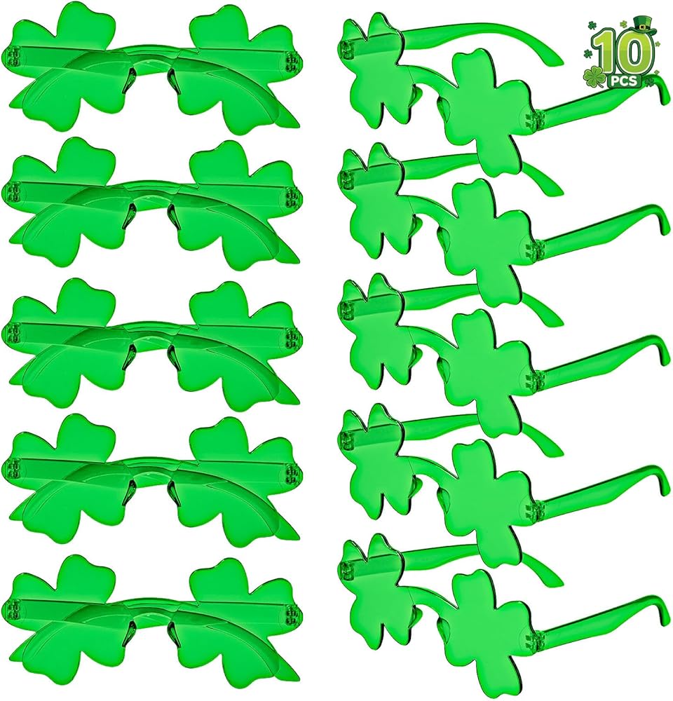 These glasses feature the iconic green shamrock shape of the holiday, complementing your St. Patrick's Day outfit with its charming design and vibrant color.