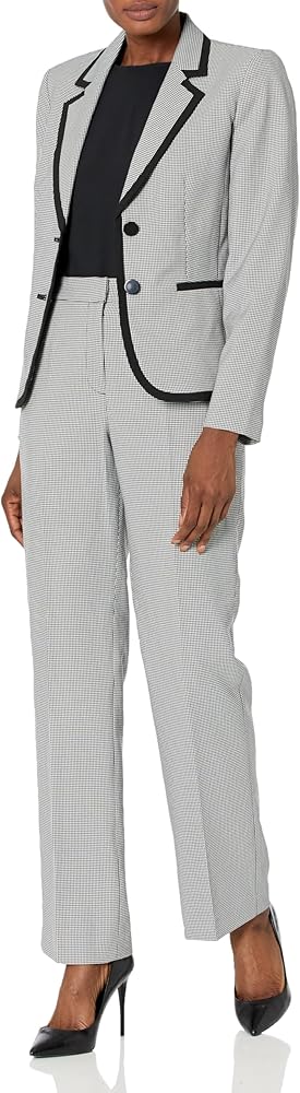 Le Suit Women's Mini Houndstooth 2 Button Jacket/Pant Suit