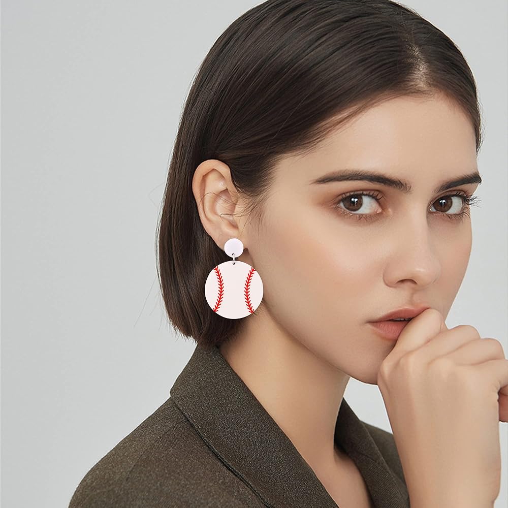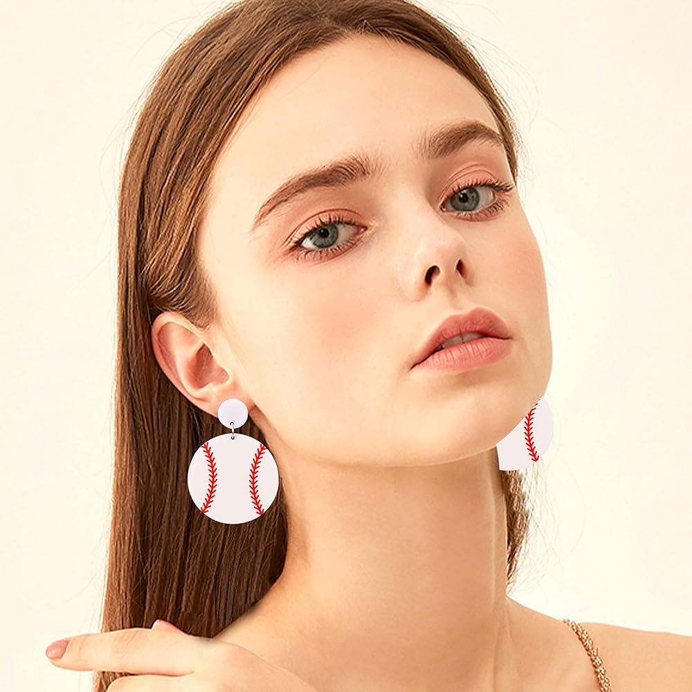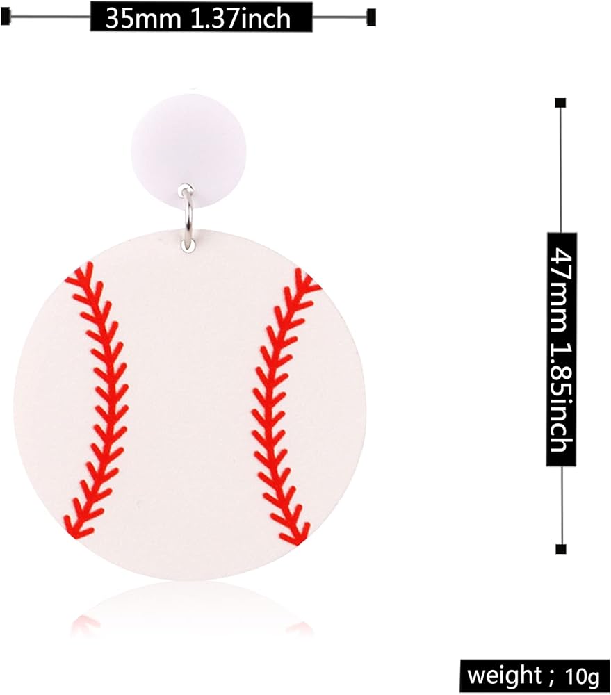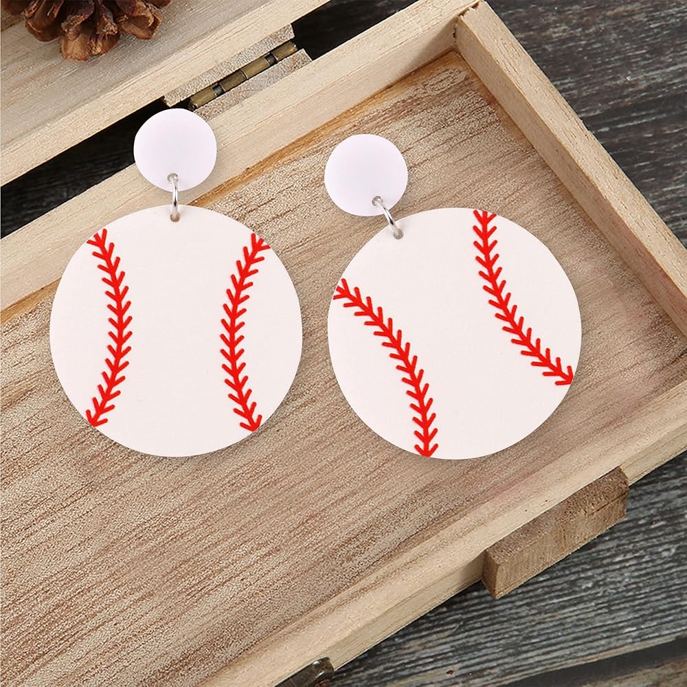 Acrylic Baseball Earrings Cool Punk Football Baseball Basketball Sports Drop Dangle Earrings Lightweight Rugby Soccer Statement Earring for Women Sport Lover Jewelry Gift