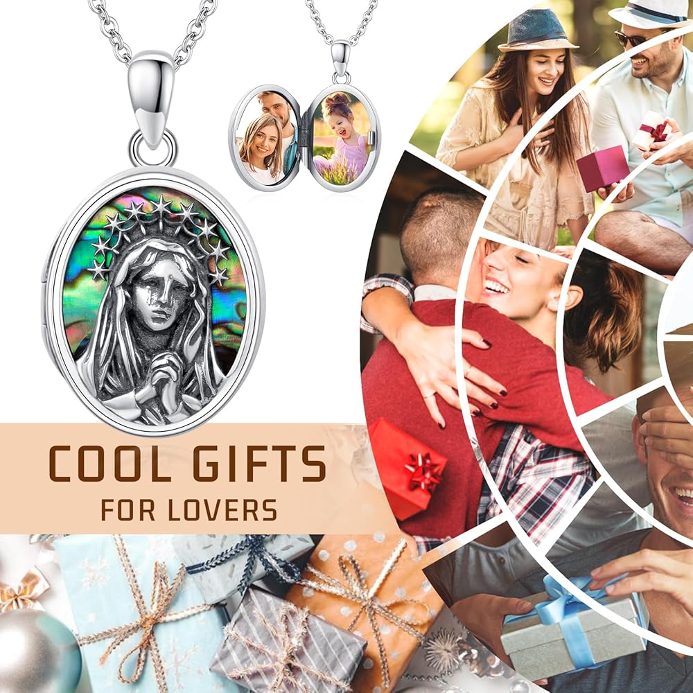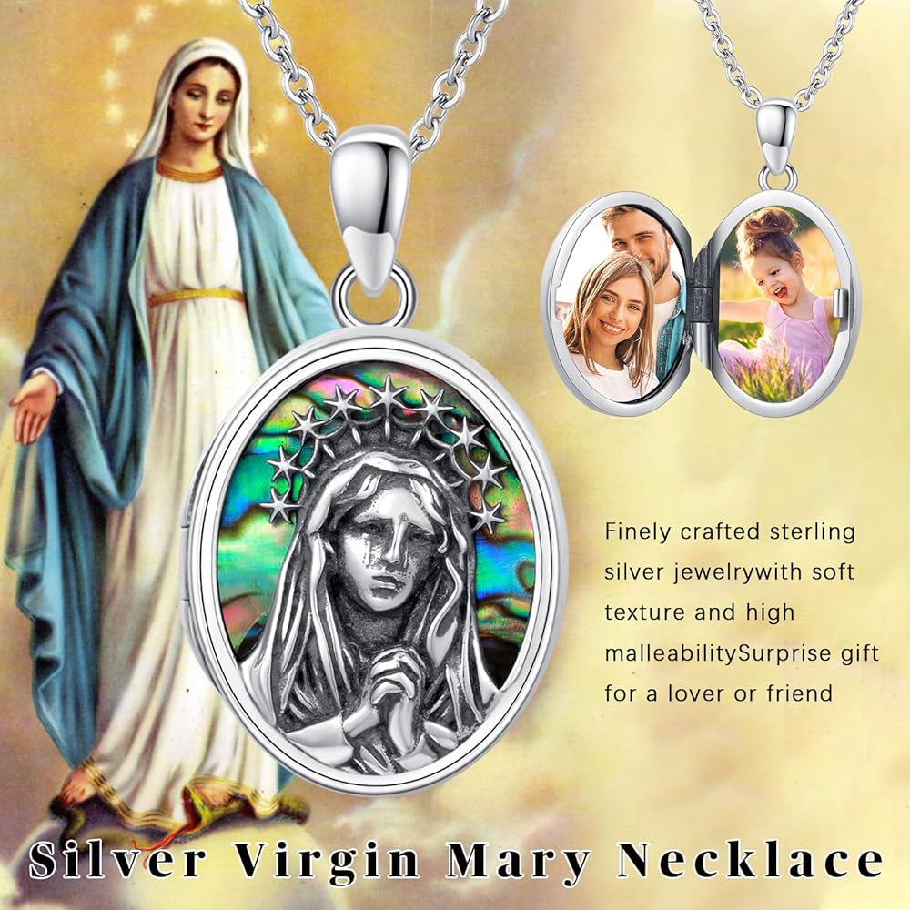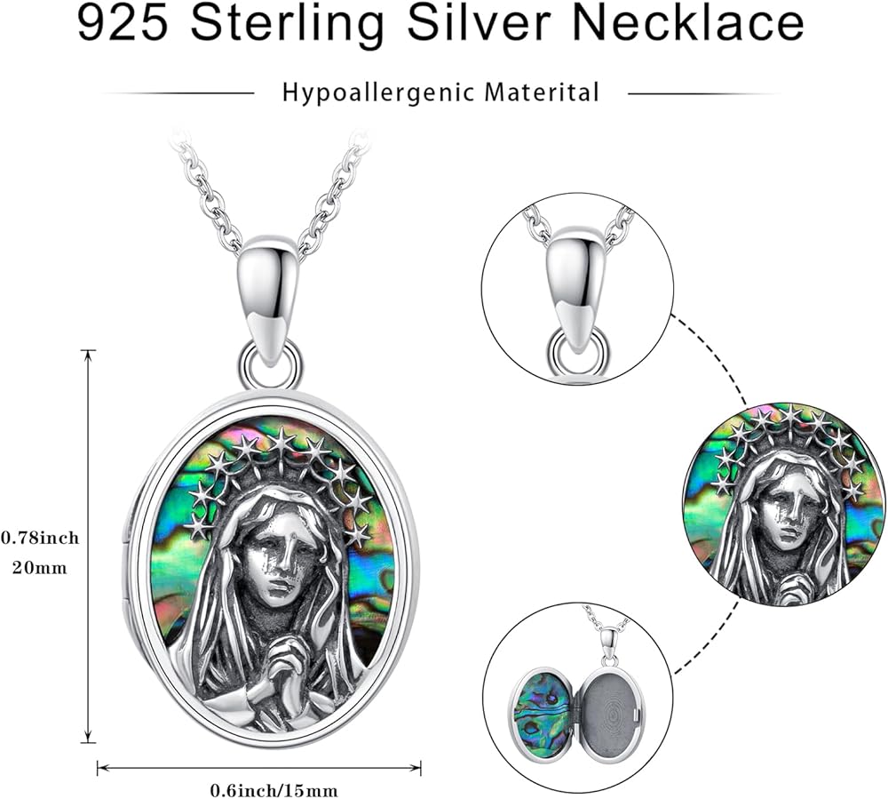 Virgin Mary Locket Necklace 925 Sterling Silver Miraculous Medal Pendant Locket Necklace That Holds Pictures Catholic Religious Jewelry Gifts for Women