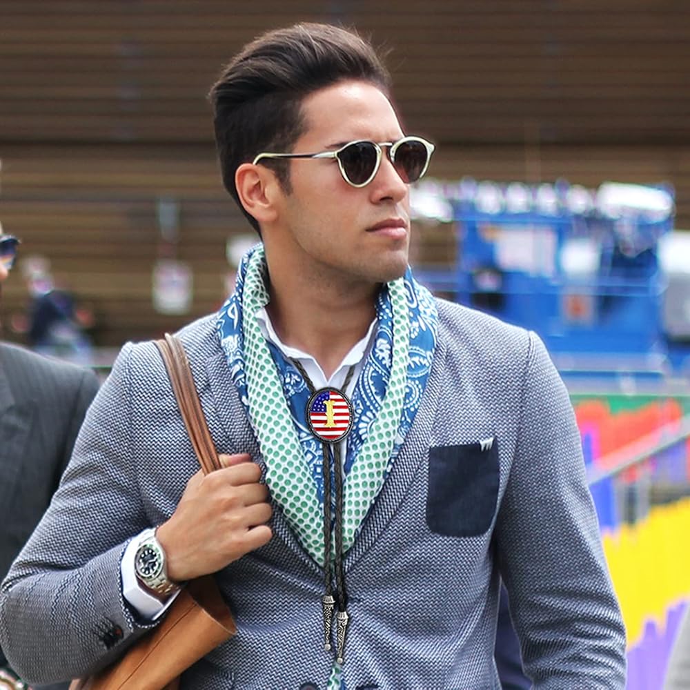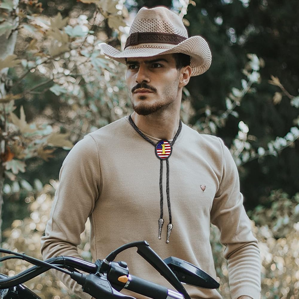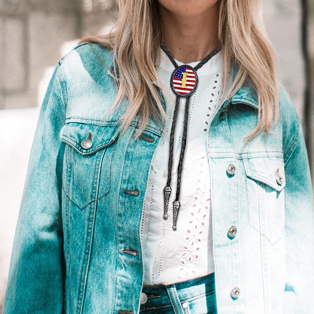 Western Bolo Tie: This genuine leather bola tie necklace gives a native american look with a star-striped background and an initial letter in the middle,stylish and unique. Can be show off your patriotic spirit with this enamel American flag bolo tie. Also,can be make a statement with this chic initial ABCDJ to Z necktie,featuring your choice of letter as a personalized accessory to show off your individuality. This cowboy tie is a great way to add a touch of western style to your outfit.