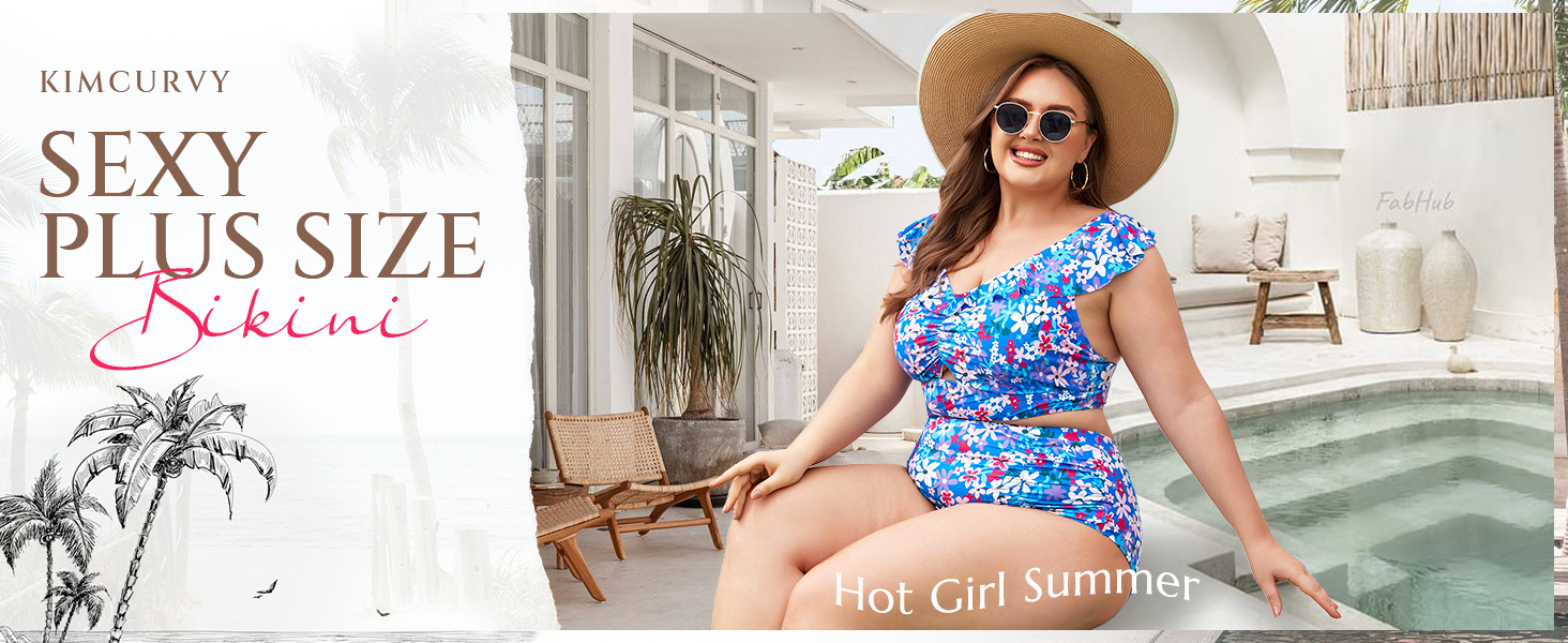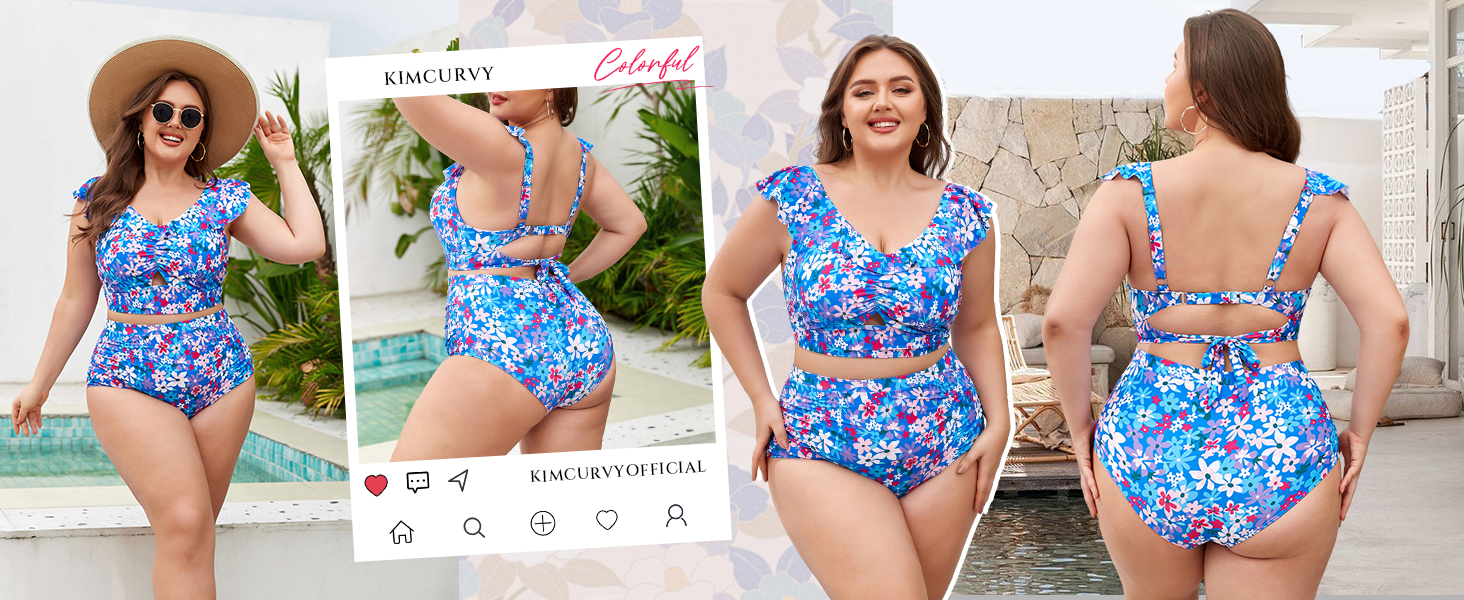 【Flattering 2 Pieces Bikini Set】Embrace your curves and make a splash in this stylish bikini designed for plus size women.