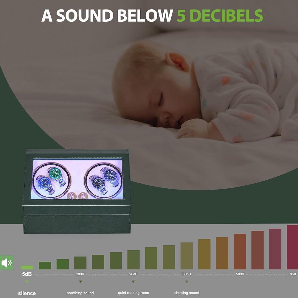 SUPER QUIET MOTOR : The sound of this watch rotator is only 5 decibels during operation, barely audible, even on quiet nights without disturbing your sleep. So you can use it in your bedroom or office