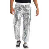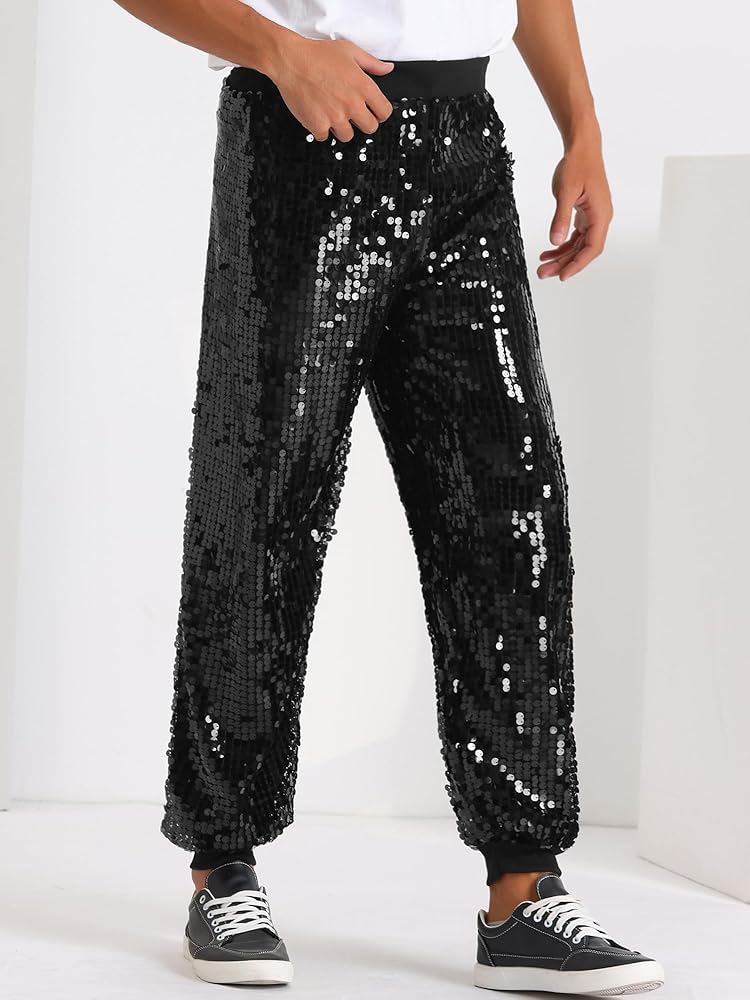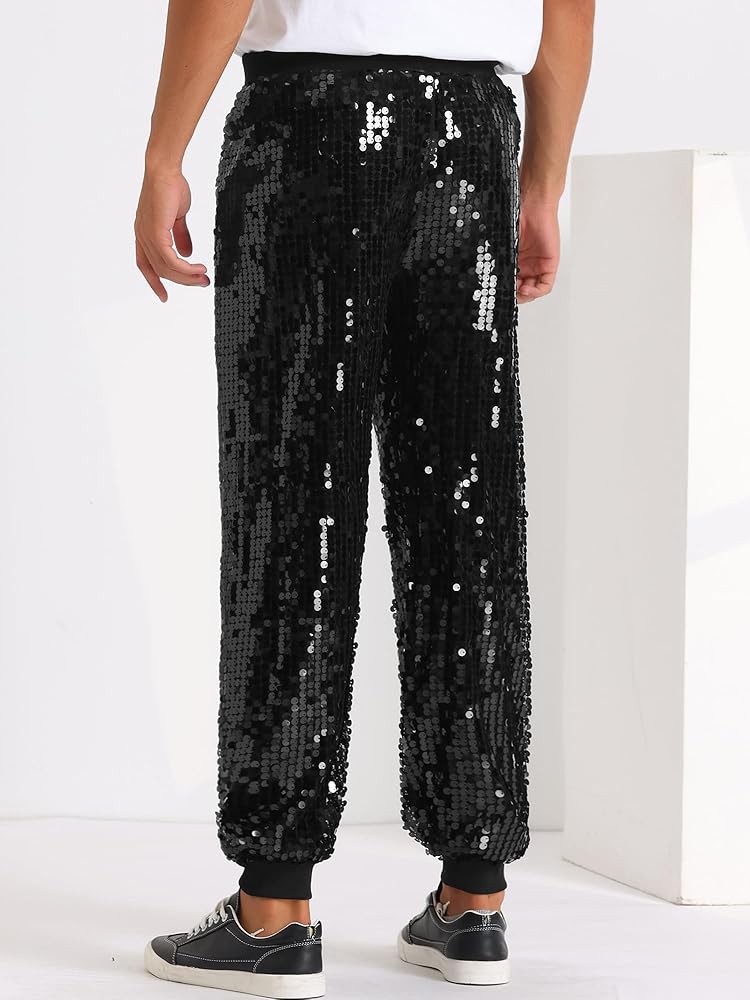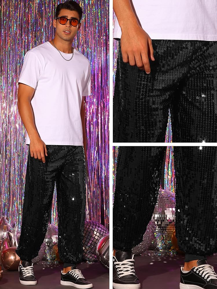 Lars Amadeus Sequin Pants for Men's Sparkly Disco Costume Elastic Waist Shiny Metallic Joggers