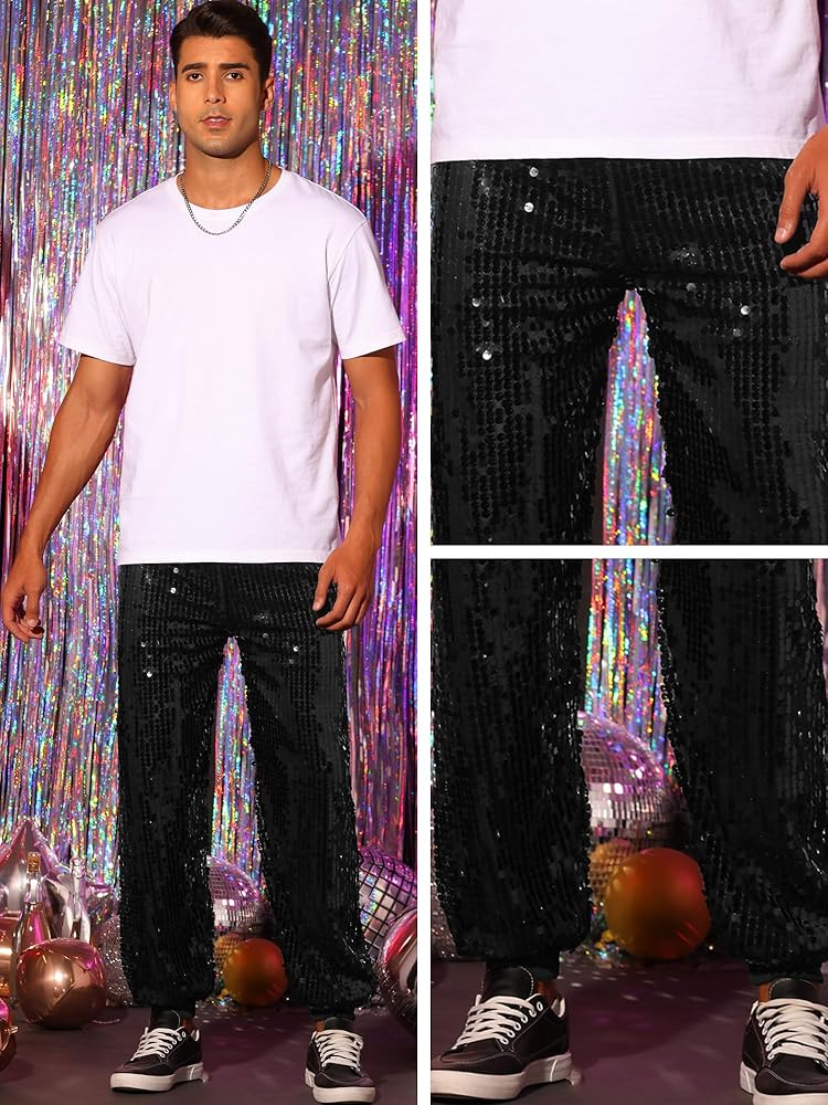 - 【SPARKLE STYLE】Men's glittering jogger pants are well-matched with shinning tees, polos, tank tops, blazers for an outstanding party style.