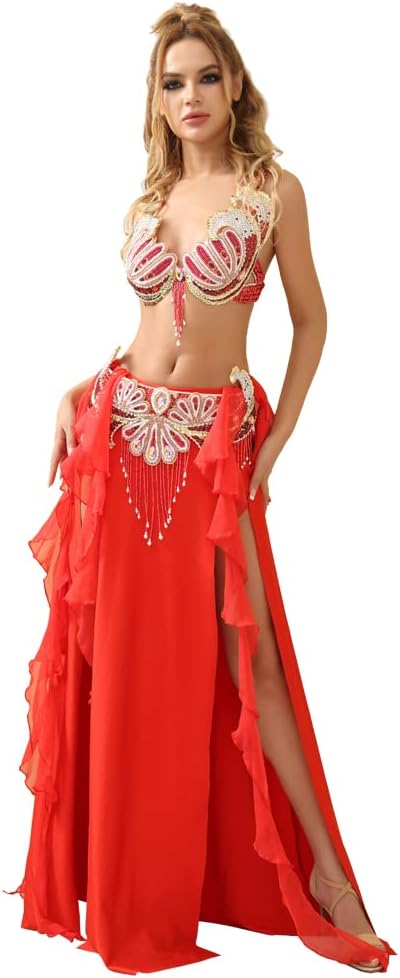 The professional belly dance costume for women is great for belly dance, carnival, bar show, professional performance, practice, masquerade, Halloween party, Mardi Gras, samba, rave, etc.