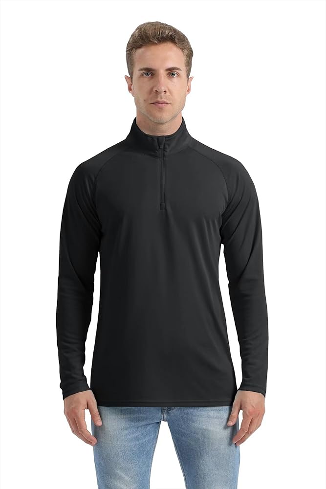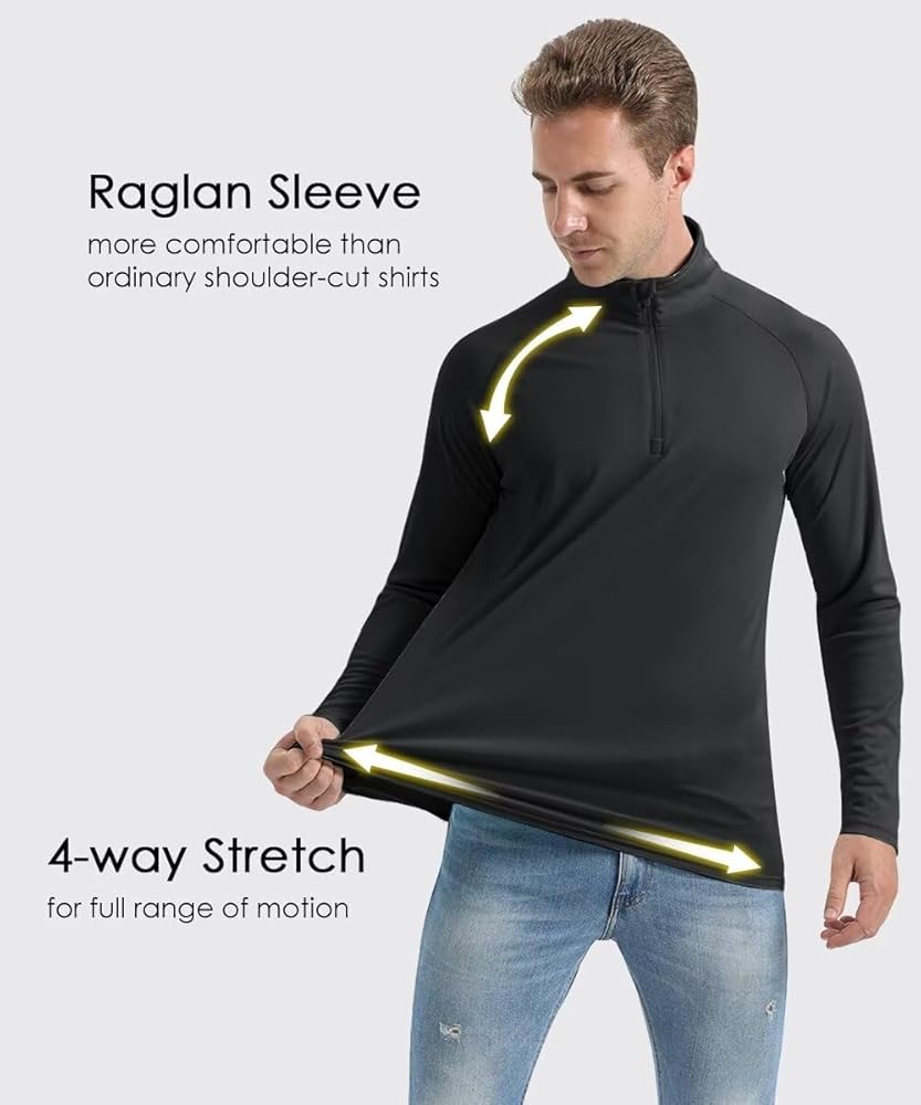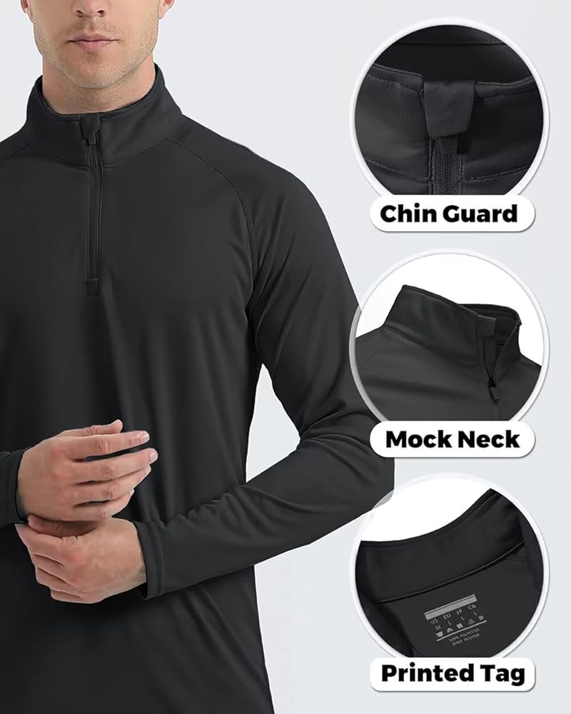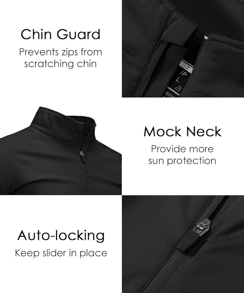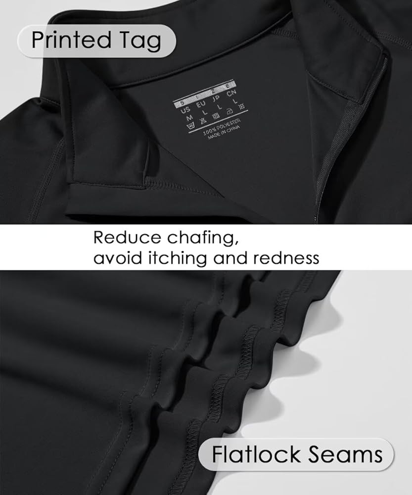 [Quarter Zip] Mock neck with auto-locking quarter zip for easier on/off, dumping heat and more protection. You'll feel cooler in summer hot weather. Machine wash or hand wash. No logo design, so you can freely match with any brand of clothes, suitable for screen printing, embroidery, heat transfer and patches
