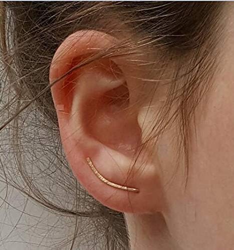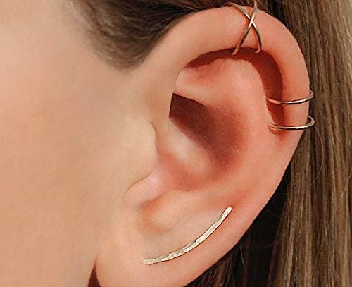 The Yellow Gold Filled ear climber featured with hammered textured finish. lighted weight , easy to wear . Minimalist and light design can be combined with studs and ear wrap piercings. Great polished ends.