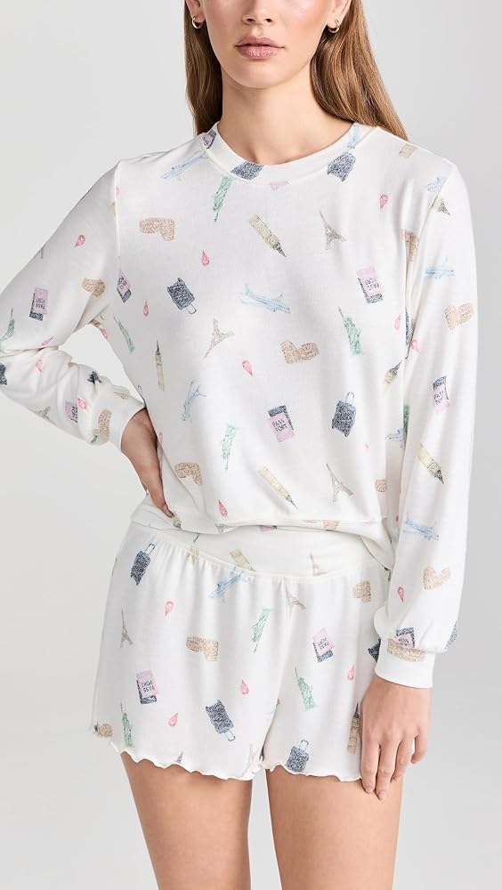- Travel-themed print, Lettuce ruffle hem