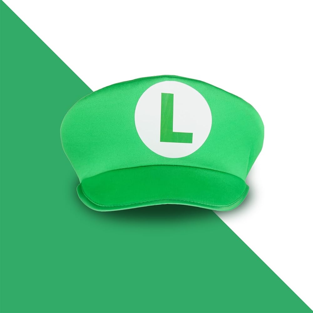 Plumber Costume Suit, Red and Green Hat, Costume Props Fake Eyebrows and Mustache