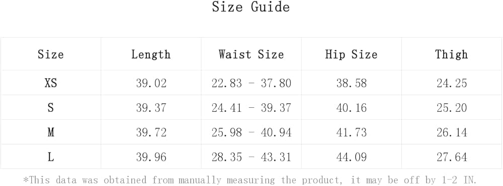 XS:Hip Size:38.6IN,Length:39.0IN,Thigh:24.3IN,Waist Size:22.8-37.8IN