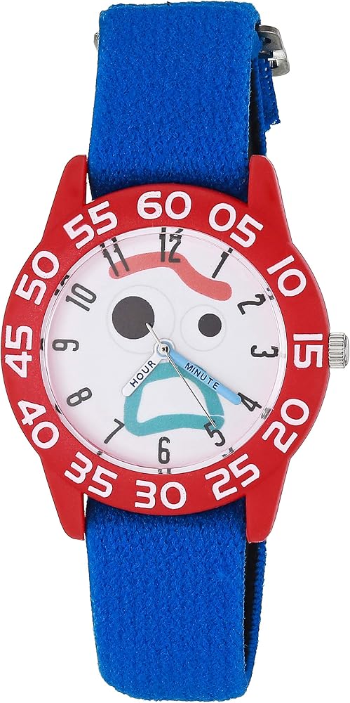 Disney Toy Story 4 Boys' Green Plastic Time Teacher Watch, 32mm Green Plastic Case, 16mm Black Hook and Loop Nylon Strap with Black Backing, Dial Features Buzz Lightyear. Mineral glass crystal, stainless steel case back, Japan quartz movement, water resistance to 100 feet.