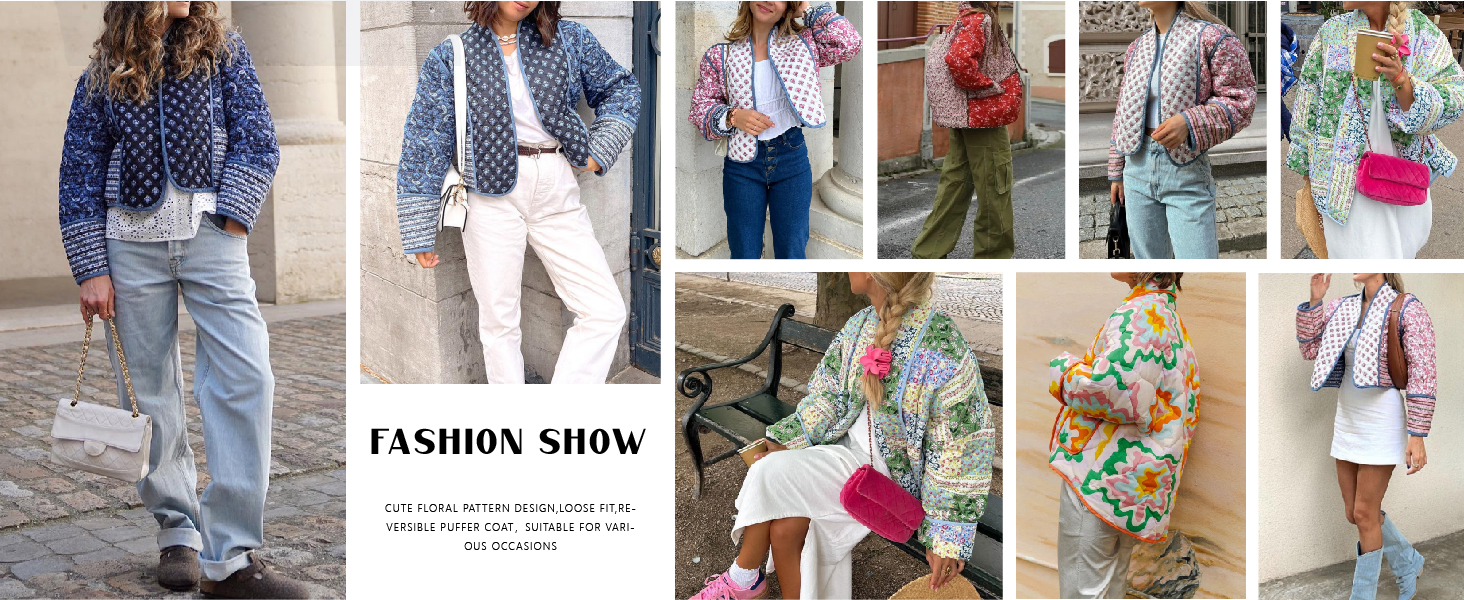 Occasion:Cropped floral printed quilted jackets for women,suitable for various occasions,such as casual wear ,shopping,dating,street, holiday,trip, hiking, party, work, a stylish and functional quilted bomber jacket.