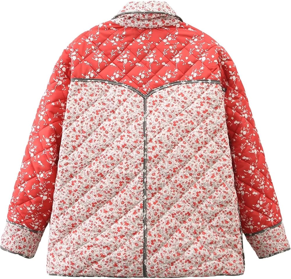 Feature:Oversized puffer cardigan jacket for women,long sleeve,crop length, drop shoulder,cute floral pattern design,loose fit,reversible puffer coat,warm lightweight open front quilted jacket.